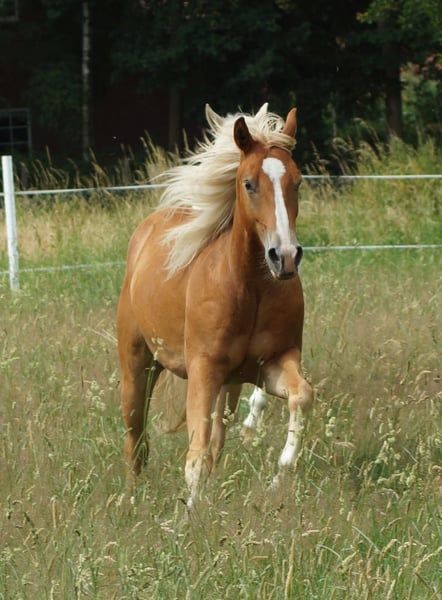 One Shiney Time, also known as Robbie, is a stunning Quarter Horse gelding sired by One Shiney Treat, a direct son of Shining Spark. Robbie’s dam is a daughter of One Time Pepto, making him a fine example of cutting bloodlines. He has correct conformation, with very athletic and cat-like movements. Robbie playfully demonstrates his talent for stops, turns, and lead changes. Currently, he is ridden and shows a very sensitive and refined nature. Sire: One Shiney Treat by Shining Spark / Grays Starlight Dam: Escada Be One Time by One Time Pepto / Shorty Lena As of June 2023, he has passed a 5-panel test (n/n) and IMM (n/n). Our foals grow up in a herd environment with other foals and are regularly dewormed and introduced to the farrier. More information at www.brallentin-quarterhorse.de