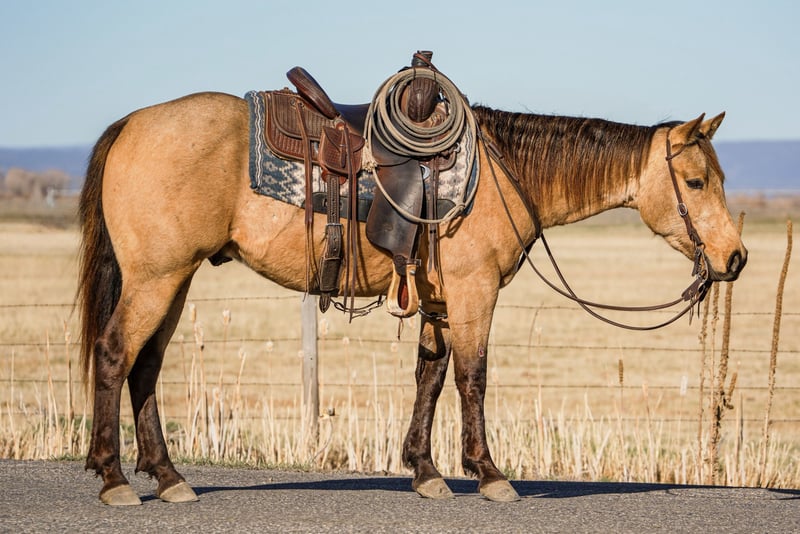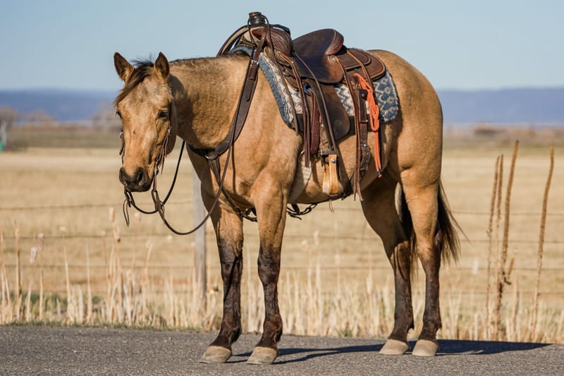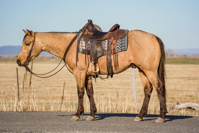 ▪️▫️◾️𝐭𝐡𝐞 𝑴𝒂𝒚 𝐒𝐞𝐥𝐞𝐜𝐭◾️▫️▪️ Happening now thru MONDAY | MAY 4th - Available EXCLUSIVELY on HorseBid's website! For more details and to register visit: www.Horsebid.com CONSIGNOR CONTACT: Larson Ranch Horses 208-541-3178 LOCATION: St. Anthony, ID BREED: AQHA REGISTERED: Yes REGISTERED NAME: CATS REAL ICHI COLOR: Buckskin HEIGHT: 14.3 AGE: 3 GENDER: Gelding Monte is a beautiful 3-year-old buckskin gelding, a true favorite with a one of a kind mind and disposition that’ll make you fall in love. He has all of the natural beauty that one could hope to find in a lifelong partner and friend. Monte stands 14.3 hh, has all black legs, mane, and tail that contrast against his one of a kind buckskin color. As good looking as he is on the outside, he’s even better on the inside. He has a kind, willing personality and is as “in-your-pocket” as they come while still being respectful — easy to catch and always wants to be around you, which makes him a hard one to want to get rid of. Monte is no stranger when it comes ranch work. We’ve used him ranch roping, gathering, doctoring, and branding calves, and he has handled every job the right way. Very gentle, yet stays broke—soft in the face and through his body with a clean, responsive handle. We’ve used him extensively in the arena. Monte moves off your leg and the rein easily, side passes, two-tracks, and lopes correct circles on the right lead while staying collected. He does it all on a loose rein and has a breath taking stop. He takes care of his riders like a good babysitter. My 8-year-old nephew rides him around and looks forward to, and enjoys riding him. Monte has been exposed and desensitized to many’s different things including kids, cows, tarps, flags, whips, noodles, balls, ropes, etc. He’s definitely one that’ll win over a crowd for his amazing handle and outstanding looks. Whether you’re looking for your next ranch prospect, trail horse, or leisurely ride in the arena, Monte is one that gets compliments everywhere he goes. Horses like this are one of a kind and we couldn’t be more proud to offer him. For more info feel free to reach out at (208)541-3178.