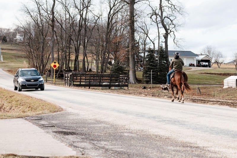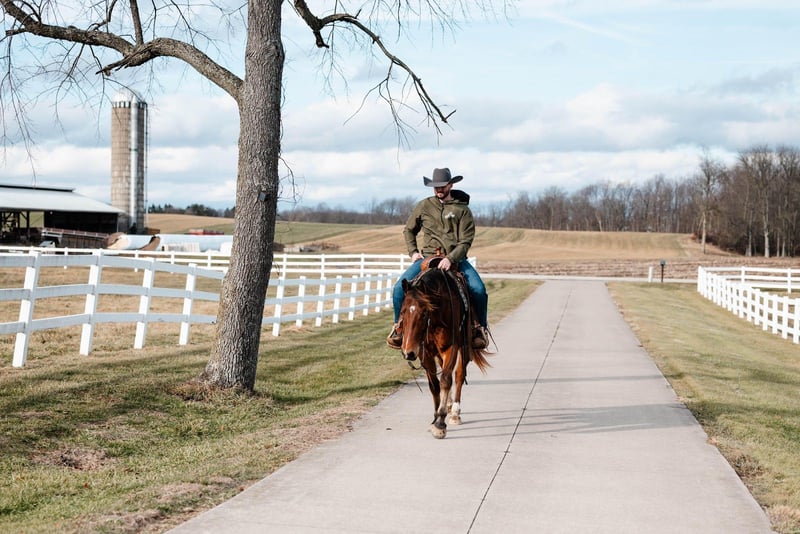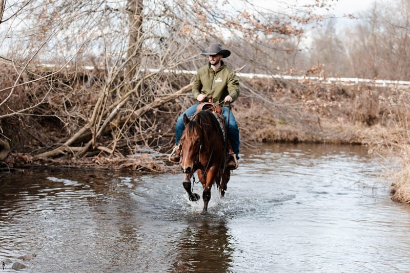 In the video, Roo was pulled straight out of the stall after being on western alfalfa for several days, loaded up, hauled to a completely different location, unloaded, and ridden immediately. He walked off the trailer like he had been there his whole life. We were riding in very windy conditions, yet Roo stayed relaxed on a loose rein and never batted an eye at traffic or new obstacles, showing his steady, dependable mindset.