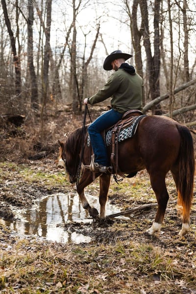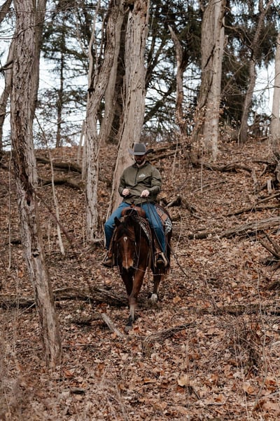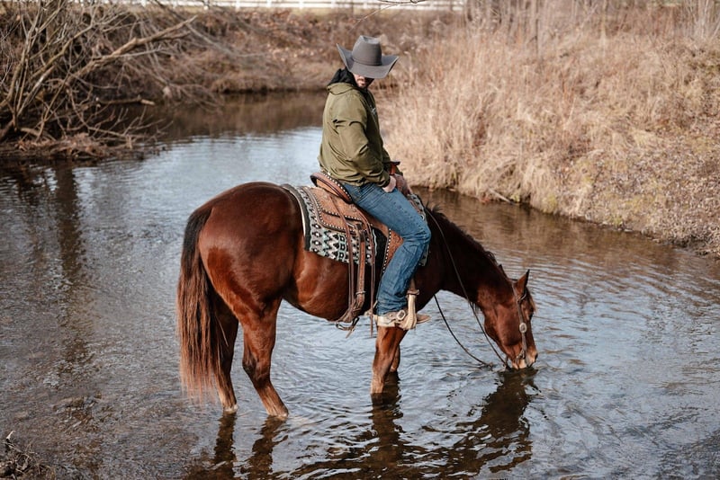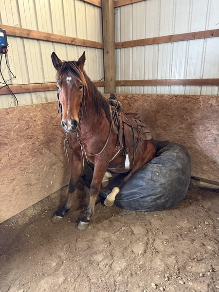 He has a wonderful personality—if you are looking for a horse to bond with and spend time with outside of riding, Roo is your guy. Roo has a one-handed neck rein and will move willingly off your leg cues. He has been hauled around the country and ridden in the arena, giving him a versatile handle. He gets along great with the other horses in the pasture and has no vices when pulling him out of the stall on Monday morning.