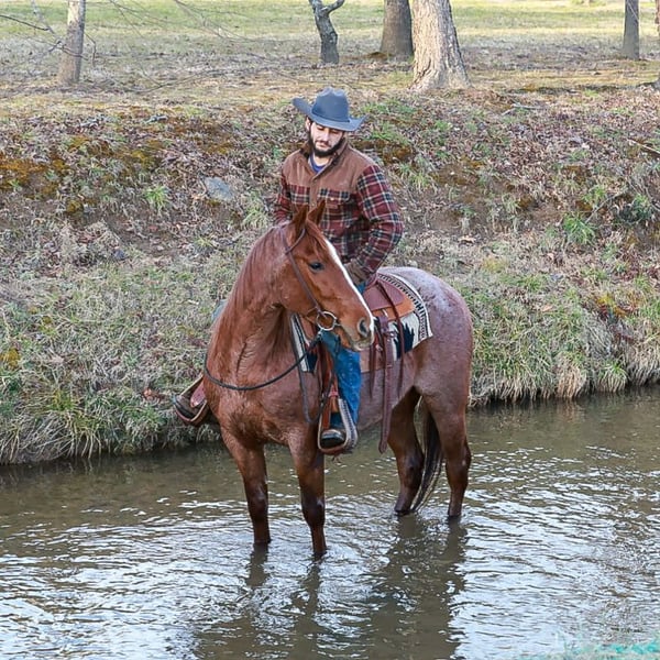 Lil Mo a 4yr old Registered Red Roan AQHA Gelding. Mo has the breeding and the moves to be an exceptional athlete. He has a very good one handed neck rein, moves off leg pressure, and is super soft in the bridle. He will take both leads with ease in the arena. Mo is very gentle to be around and very easy to get along with. He has been ridden in the North GA mountains for the last 6-7 months. We have trail ridden him all over our farm, as much as we have literally took him to town and rode all over. I’ve used him pushing cattle around and checking fences. He’s been nothing shy of a gentleman since he has been with me and my family. He is always there at the gate waiting on us to start the day. I swear he is more dog than horse. Mo will W/T/C or just lope right out of his tracks from a dead standstill. He will cross tie in our wash-rack to bathe him. Mo stands great for the farrier as well as he does to be mounted. He sales UTD shots, shoes, coggins, and deworming. I can help with transportation as well. Feel free to call anytime if you have any questions. 706/897/6721