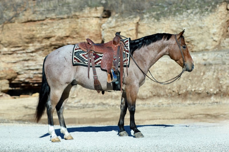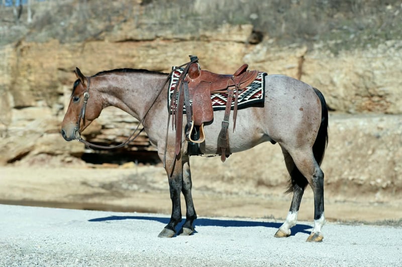 ⚜️𝐭𝐡𝐞 𝓔𝓵𝓲𝓽𝓮 𝐒𝐩𝐫𝐢𝐧𝐠 𝐂𝐥𝐚𝐬𝐬𝐢𝐜⚜️ Happening now thru MONDAY | APRIL 20th - Available EXCLUSIVELY on HorseBid's website! For more details and to register visit: www.Horsebid.com CONSIGNOR CONTACT: Heartland Equine 417-793-2253 LOCATION: Mt Vernon, MO BREED: Quarter horse REGISTERED: Yes REGISTERED NAME: Cowboys Tin Star COLOR: Red roan HEIGHT: 14.3 AGE: 4 GENDER: Gelding Cowboys Tin Star aka “Tinsel” is a 4 year old bay roan AQHA gelding standing 14.3 hands. He is absolutely stunning and built like a tank, Tinsel is as shapey as they come. This horse has gone through our program, he has passed every test we have thrown at him and checked all the boxes. Tinsel is uncomplicated to ride making him suitable for any level rider. He is a point & go type of gelding. Plenty of buttons, soft in the face, nice stop and picks up his leads- he is smooth & fun to ride. Moves off leg pressure, stays light in your hands and rides correct. NOTHING phases this young gelding: flappy tarps, water, trail obstacles, traffic, etc. He is prepared to handle anything & everything you could possibly throw at him! He has been used outside and at the feedlot. We have used him to load trucks, sort and doctor cattle. He has been exposed to A LOT! Tinsel is ready to go on with the career of your choosing, the options are endless for a BIG gentle & broke gelding like him! We are very proud to represent a horse of this caliber and can’t wait to see what he accomplishes with his new owners. No buck or bad habits. He is an absolute gentleman, stands to be saddled/mounted. Tinsel is easy to be around, he is a favorite in our barn. You will love his calm, sweet demeanor as much as we do. He loves attention and to be groomed. Very easy to catch. Great for the farrier. Tinsel is sound, sane & ready to move into your barn!
