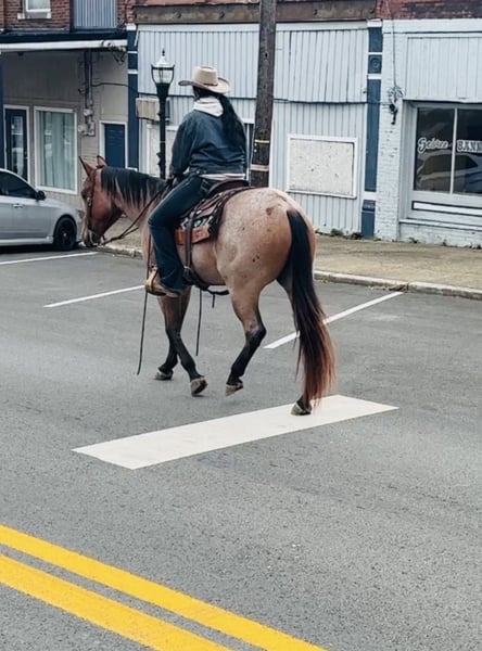 Chili Pepper 4 Yr old 15.2hh Bay Roan AQHA Gelding