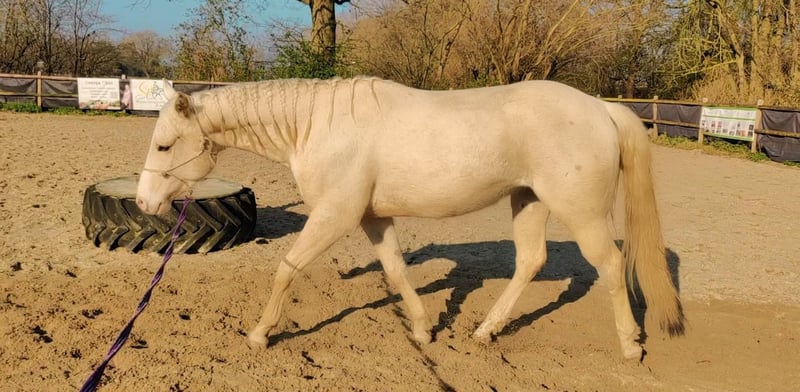 With a heavy heart, I must part ways with my 4-year-old Quarter Horse gelding due to health reasons. Snowy is currently in training and being gently introduced to the basics appropriate for his age. He already knows the groundwork basics and is being specifically prepared for riding. He shows a willing attitude to learn, is attentive, and continues to develop steadily. In terms of character, he is an open, curious, and brave gelding. In daily handling and when lunging, he presents as rather calm, relaxed, and pleasant. Once he has gained trust, he follows his handler through any new adventure. However, he still needs guidance and security and requires a clear and consistent approach from his handler. Therefore, he is not suitable as a beginner’s horse and should only be entrusted to experienced riders. Snowy has only known stall-pen management so far and appears very content and balanced in this environment. In the herd, he is a lower-ranking, very social, and compatible horse, who still enjoys playing a lot and happily, in line with his age. Health-wise, it should be noted that he had a stretch tendon injury on his hind left leg, which has healed well and can be normally loaded. Additionally, he currently has a sakoid, which is being treated. Snowy is the perfect horse for someone who enjoys further developing and training a young horse. He has the best prerequisites to become a reliable leisure horse. If you are seriously interested, I would be happy to receive a message.