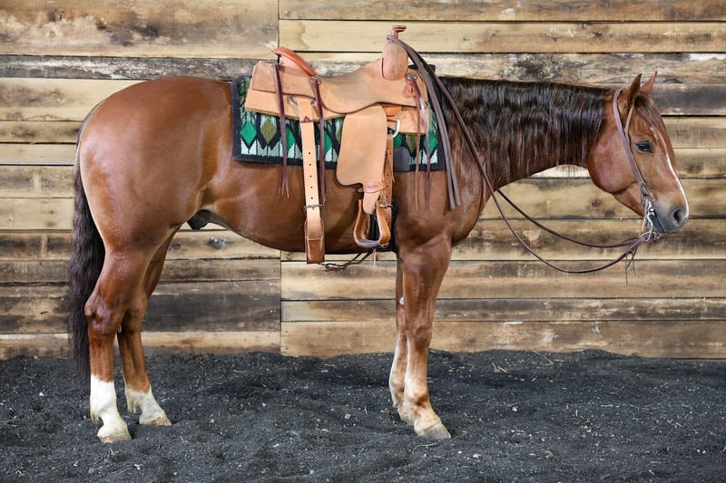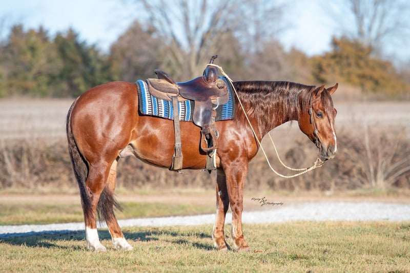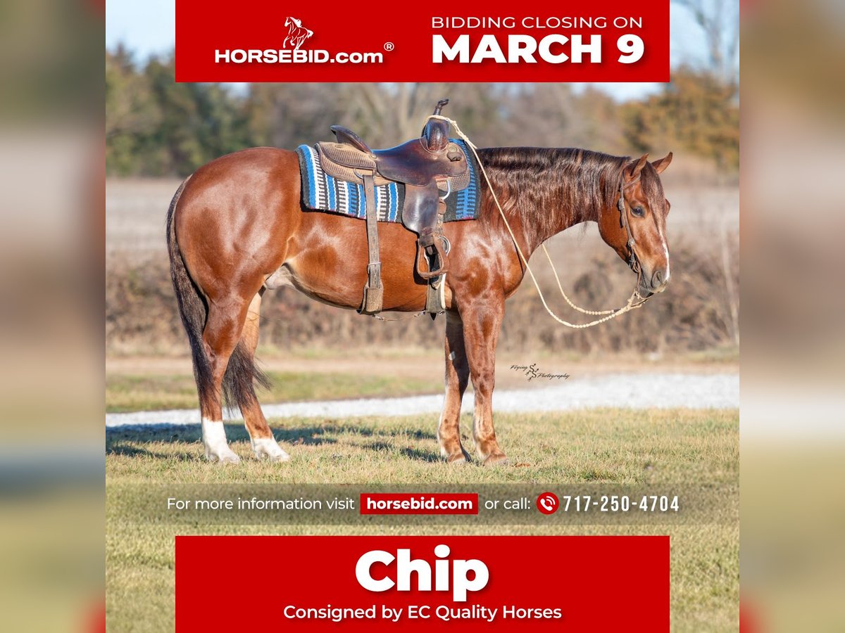 ℳ𝒶𝓇𝒸𝒽 ♦️𝐑𝐈𝐃𝐄𝐑'𝐒 𝐂𝐇𝐎𝐈𝐂𝐄♦️ Happening now thru MONDAY | MARCH 9th - Available EXCLUSIVELY on HorseBid's website! For more details and to register visit: www.Horsebid.com CONSIGNOR CONTACT: EC Quality Horses 717-250-4704 or 443-851-1253 LOCATION: Beaver Springs, PA BREED: Quarter Horse REGISTERED: Yes REGISTERED NAME: CCR CHIPSINTOWN COLOR: Sorrel HEIGHT: 15 AGE: 4 GENDER: Gelding “CCR CHIPSINTOWN” aka Chip is a 2022 model Sorrel Gelding Registered in the AQHA. He stands approximately 15hh tall and built to last a lifetime. He’s solid, thick made, and has great confirmation! Looking for a horse that can do ANY discipline? Chip can excel in all categories anything from reining, working cow horse, ranch pleasure, ranch riding, working western rail, trail, and even english equitation! He’s honest and kind! He is one that rides phenomenal inside and just as good on the outside! We have had Chip around cows, farm equipment, dogs, cars, and even a zebra! Nothing seems to phase this guy! Chip rides both english and western. He will walk, trot, extend trot, canter, and slow lope. He knows his leads and lopes nice collected circles. He has a one hand neck rein, backup, and side pass. Chip will spin both directions and no need for hands! He will also slide stop! He’s soft in the bridle and will even just ride around with a string around his neck. Chip is always the one i pick from the barn to ride. He’s reliable and always a blast to ride! We have taken Chip out on the trails! He has crossed over logs, through brush, over rock, through mud, and through water! Wherever you point Chip that’s where he will go! He’s really the best boy! Chip loads and unloads on and off the trailer. He stands to get saddled, unsaddled, mounted, and dismounted from. If you want a horse that checks all the boxes you need Chip! You won’t be disappointed! Chip is selling 100% Sound! A PPE is welcome at the buyers expense. He will come with a current coggins and health certificate after purchase! For further information regarding Chip please don’t hesitate to reach out to Carley @ 717-250-4704 or Evan @ 443-851-1253 SIRE: TINSELTOWN FLASH (2012). $136,148: Congress Open Reining Futurity Champion; finalist NRBC Derby Open twice; finalist NRHA Open Futurity. Sire of 9 money earners, including UBETRBETHINKNABOUTIT ($6,240: finalist Congress Reining L4 Open Futurity), I PITY DAH FOOL ($3,771: finalist Congress Open Reining Futurity L2), TINSELTOWN FLASHER ($3,603: East Central Regional Affiliate Reining L4 Open Futurity Co-Reserve Champion), DIZZYS DIRTY BLONDE ($3,346: Michigan Memorial Reining L4 Non-Pro Futurity Champion), RUFN UP TINSELTOWN (NRHA $1,452), TIGER DUN IT (finalist Congress Reining L1 Open Futurity). DAM: SOULA JEWELLA (2009). Dam of 3 money-earners, including CCR VOODOO STAR ($49,524: Buckeye Reining L4 Open Futurity Reserve Champion), CCR BET SHESA STAR ($4,464: ARHA Honor Roll Ranch Cutting Youth Champion). Halt-sister to LIL JEWEL ($69,360: split 3rd NRHA Int. Open Futurity), SUPERMANS JEWEL (P) ($21,497: finalist Abilene Spectacular Open Derby). Out of DOTS JEWEL, a half-sister to VALENTINE DREAMIN ($36,094: 3rd West Coast Spectacular Open Reining Derby), JESSIE DOT TARI ($32,944: finalist NRHA Open Futurity), HOLLYWOOD LOLITA ($25,845: NRHA Limited Non-Pro Futurity Reserve Champion).
