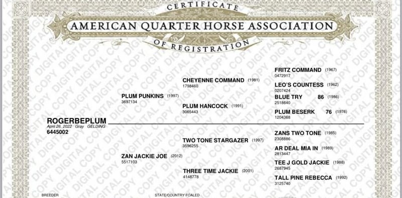 ONLINE AUCTION Place your bids at www.PlatinumEquineAuction.com Starting Bid $3500 Auction ends December 21st, 2025 Need a new saddle? Check out White Rock Saddles on our website or Facebook ROGERBEPLUM — The Gray Gelding that gets noticed everywhere he goes. Some horses look good in pictures. ROGERBEPLUM looks good in person, on video, and under saddle. AQHA registered, coming 4 (2022 model), and standing 15.1 hands of clean gray with a balanced, athletic build. He has that timeless ranch shape: strong hip, good shoulder, plenty of bone, and a smart, level expression. He is the kind that stands out in a group without trying. He’s been ridden out in the kind of country that makes a good, honest horse — through rocks and brush, across creek bottoms and water, up and down steep hills, and out around wildlife, ranch vehicles, and everyday road traffic. Tarps moving, flags flying, bridges, gates, tires, poles — he meets everything with steady curiosity. Horses ridden like this don’t have to be convinced to go somewhere; they’re ready to step in and get to work. In the arena, he rides with feel and purpose. Soft transitions, correct circles, a smooth natural lope, and a willing attitude that stays consistent. He stays connected when you pick up a rein and he learns from what you show him — each ride adds polish without losing that easygoing mind. He has been started tracking the lead steer and sled with genuine interest. He naturally rates, stays balanced through his shoulder, and offers something real to build on. If roping is where you want to take him, he’s already pointed in the right direction. If you want a versatile ranch, trail, or everyday using horse, he fits that as well. His pedigree is filled with proven using-horse lineage: Cheyenne Command, Fritz Command, Blue Try, Zans Two Tone, Two Tone Stargazer, Tee J Gold Jackie, and Tall Pine Rebecca — families known for good minds, durable structure, and long, productive saddle time. On the ground, he’s a straightforward horse to handle. He ties, clips, loads, bathes, and stands for the farrier. Stalls or pasture, alone or with company, he settles in quick and stays consistent. What sets ROGERBEPLUM apart is the blend of age, mind, and build — young enough to shape into anything you want, with the attitude to enjoy right now, and the physical quality to look good doing it. If you’re looking for a gelding with presence, potential, and years of real riding ahead of him, this gray deserves more than a quick scroll-by. He’s the kind people remember. Please feel free to call with any questions, and if you’re able, come visit him in person and take a ride. It’s the best way to see what a genuinely good horse he is. He is young horse they will make a great one in his future: Dina – Longhorn Ranch Paicines, California 831-537-1915 Shipping available nationwide ONLINE AUCTION Place your bids at www.PlatinumEquineAuction.com Starting Bid $3500 Auction ends December 21st, 2025 Need a new saddle? Check out White Rock Saddles on our website or Facebook