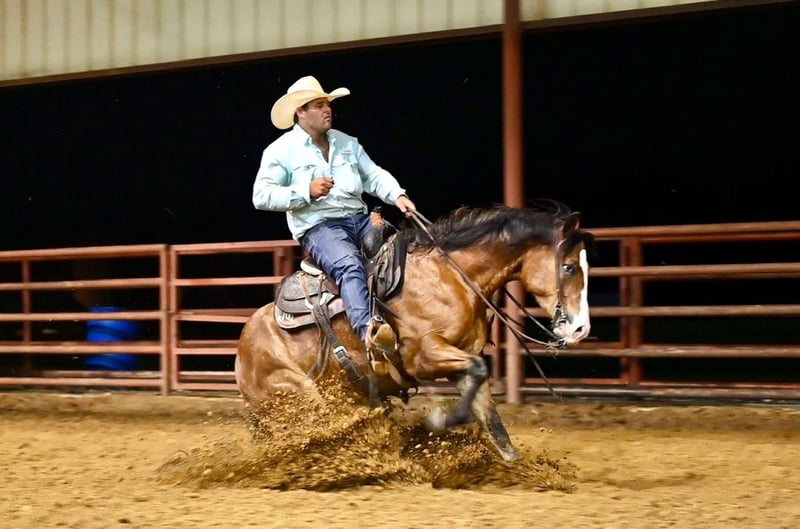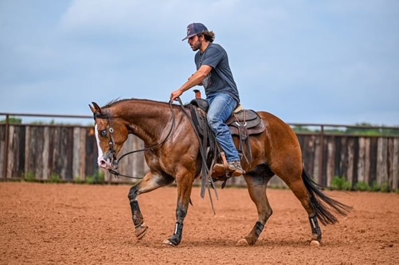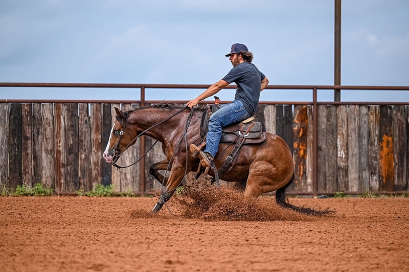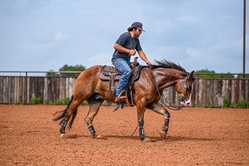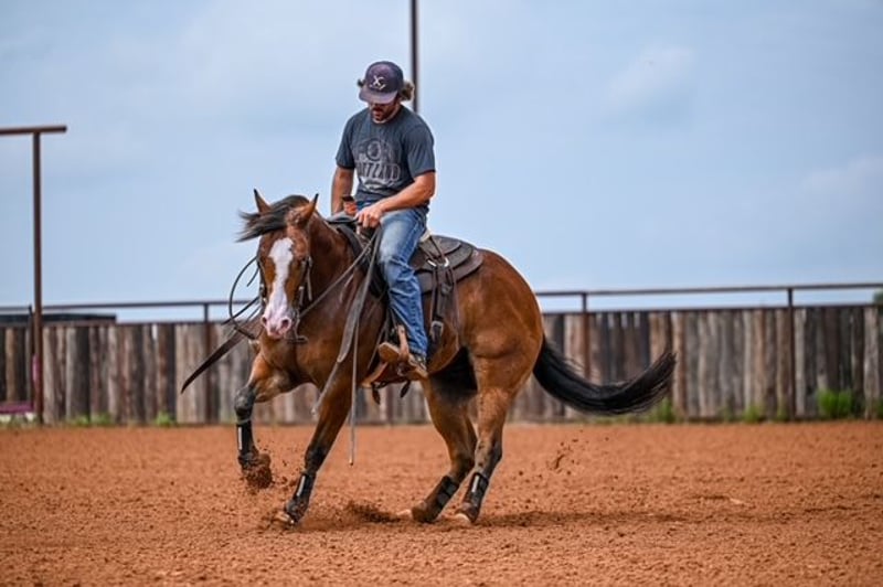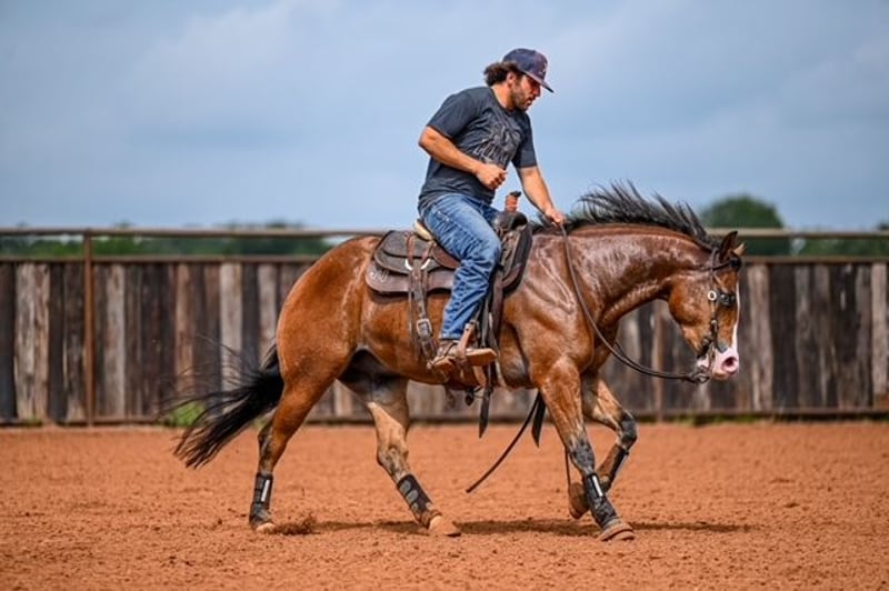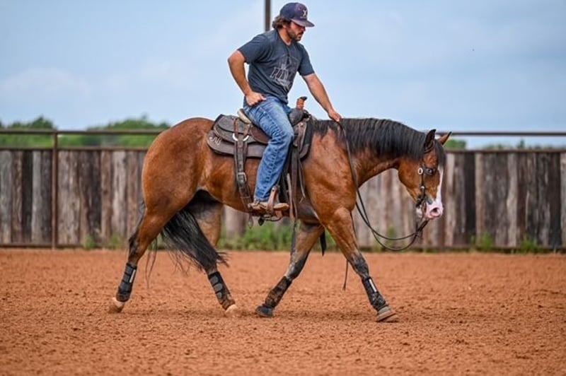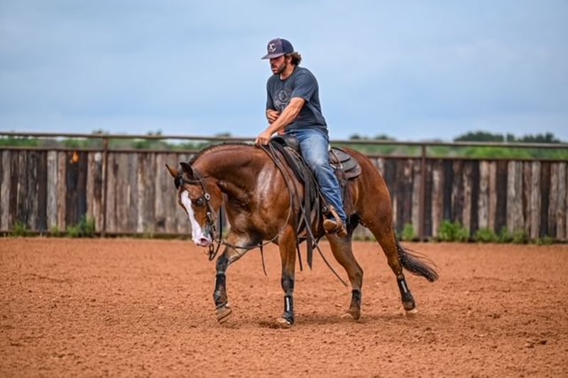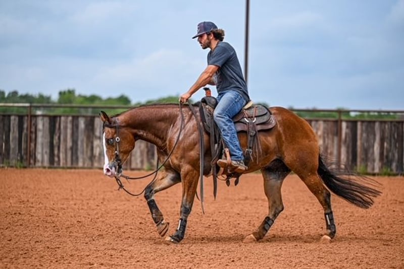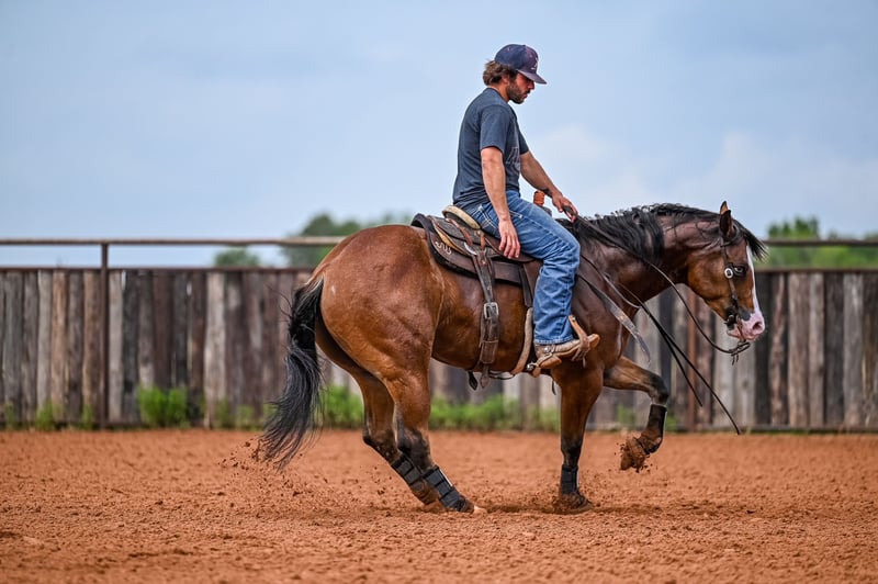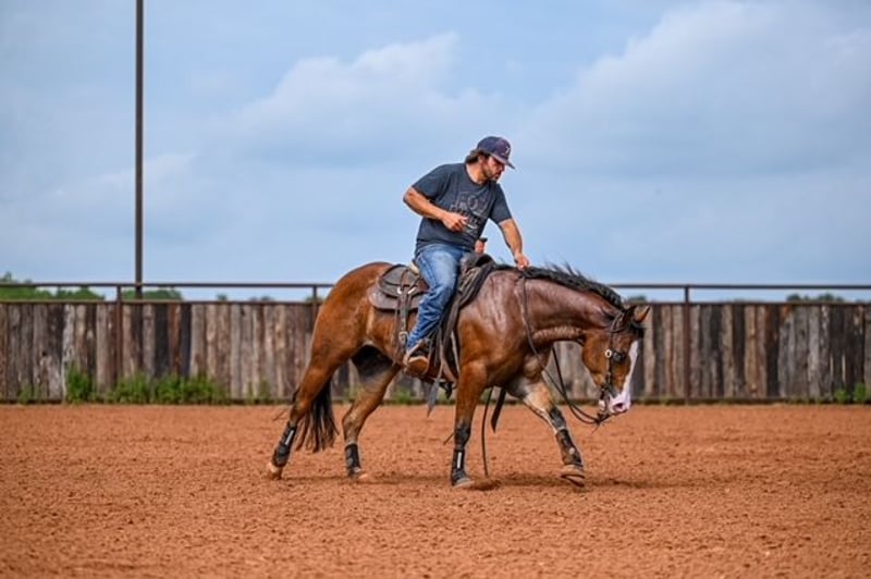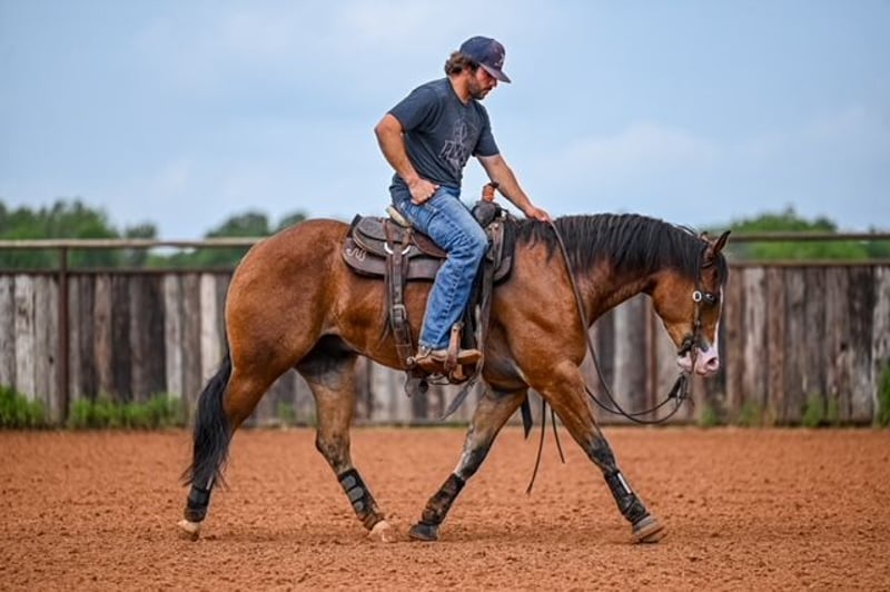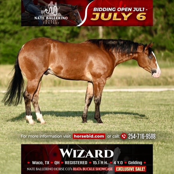 NATE BALLERINO HORSE CO's ★ RIATA BUCKLE ★ Showcase Happening now thru SUNDAY | JULY 6th - Available EXCLUSIVELY on HorseBid's website! For more details and to register visit: www.Horsebid.com CONSIGNOR CONTACT: Nate Ballerino Horse Co 254-716-9588 LOCATION: Waco,Tx BREED: QH REGISTERED: Yes REGISTERED NAME: The Unspookable COLOR: Bay HEIGHT: 15.1 AGE: 4 GENDER: Gelding The Unspookable LTE $554.00 NRHA The Unspookable “Wizard” is a breathtakingly beautiful blue-eyed bay gelding, masterfully trained and successfuly shown in the reining. Wizard is sired by Spooks Gotta Whiz and out of a money producing daughter of INWHIZABLE; Wizard is a true delight to ride and is enjoyable for any level rider! Soft and supple with a strong work ethic and a charming personality. Walks trots and lopes as pretty as you please with a terrific handle to boot. Stops like one should and has classy turnaround, crisp lead departures and a clean change. Would make a super ranch rider or step up as your next rope horse! Wizard has been pen roped on and ridden out on the ranch. He is Riata Buckle Eligible. Please Call Nate at 254-716-9588 with any questions. Nation Wide shipping can be arranged.