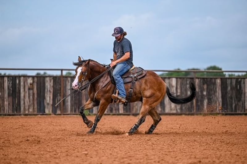 NATE BALLERINO HORSE CO's ★ RIATA BUCKLE ★ Showcase läuft jetzt bis SONNTAG | 6. JULI - Ausschließlich auf der Website von HorseBid verfügbar! Für weitere Details und zur Registrierung besuchen Sie: www.Horsebid.com KONTAKT DES EINLIEFERERS: Nate Ballerino Horse Co 254-716-9588 STANDORT: Waco, Tx RASSE: QH REGISTRIERT: Ja REGISTRIERTER NAME: The Unspookable FARBE: Brauner GRÖSSE: 15.1 ALTER: 4 GESCHLECHT: Wallach The Unspookable LTE 554,00 $ NRHA The Unspookable „Wizard“ ist ein atemberaubend schöner, blauäugiger, brauner Wallach, meisterhaft ausgebildet und erfolgreich im Reining vorgestellt. Wizard stammt von Spooks Gotta Whiz ab und ist aus einer geldbringenden Tochter von INWHIZABLE; Wizard ist ein wahrer Genuss zu reiten und macht jedem Reiter Freude! Sanft und geschmeidig mit einer starken Arbeitsmoral und einer charmanten Persönlichkeit. Geht, trabt und galoppiert so schön, wie man es sich wünscht, mit einer großartigen Handhabung obendrein. Hält wie man es sollte und hat einen eleganten Wendekreis, präzise Abgänge und einen sauberen Wechsel. Wäre ein hervorragender Ranch-Reiter oder könnte als Ihr nächstes Ropppferd durchstarten! Wizard wurde im Paddock geroppt und auf der Ranch geritten. Er ist Riata Buckle berechtigt. Bitte rufen Sie Nate unter 254-716-9588 bei Fragen an. Der Versand kann landesweit arrangiert werden.