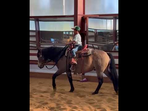 Meet Scout, a striking 5-year-old grade sooty buckskin gelding standing 14 hands and weighing around 850 lbs. His one-of-a-kind, smoky-gold coloring turns heads everywhere he goes, and his personality seals the deal. Scout’s got that rare mix of good looks, great mind, and goofy, puppy-dog charm that makes him a barn favorite, the kind who greets you at the gate and insists on scratches before you even get the halter on.