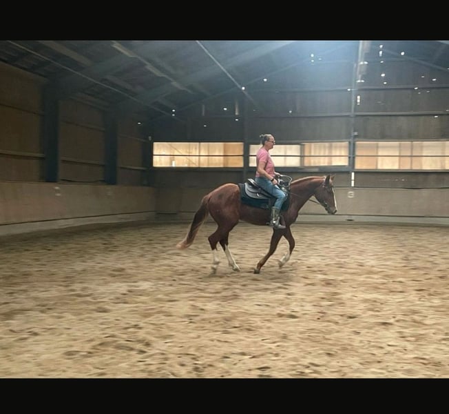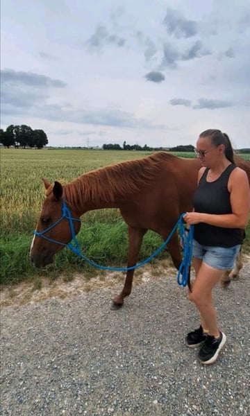 Wir suchen für unseren Wallach NP Mr Big Sunburst geboren 2021, von uns einfach Big genannt, ein neues Zuhause. Big ist ein sehr lieber und menschenbezogener, unverbrauchter Quarter Horse Wallach in der Farbe Sorrel mit einem Stockmaß von 1,51. Er liebt die gemeinsame Zeit mit Menschen und ist im Umgang sehr brav. Abstammung: Big Chex on the Cash x Dada Life Sunburst (Great Sunburst) Er war 6 Monate bei Maarten de Gouw im Beritt. Hier zeichnete er sich durch seinen unkomplizierten, ruhigen Charakter und sehr schönen Bewegungen aus. Seine Grundgangarten sind sehr sitzbequem. Das Reiten im Gelände kennt er noch nicht. Erste Spaziergänge im Gelände mit anderen Pferden hat er ganz entspannt gemeistert. Big kennt die Haltung in der Box sowie im Offenstall. Aktuell lebt er in einer Herdenhaltung mit Box in der Nacht. Big ist gesund und wurde regelmäßig entwurmt und geimpft. Dem Hufschmied wird er selbstverständlich regelmäßig vorgestellt. Der 5-Panel Test ist N/N