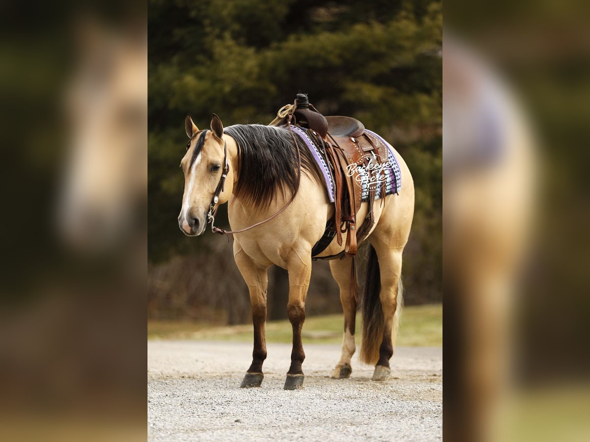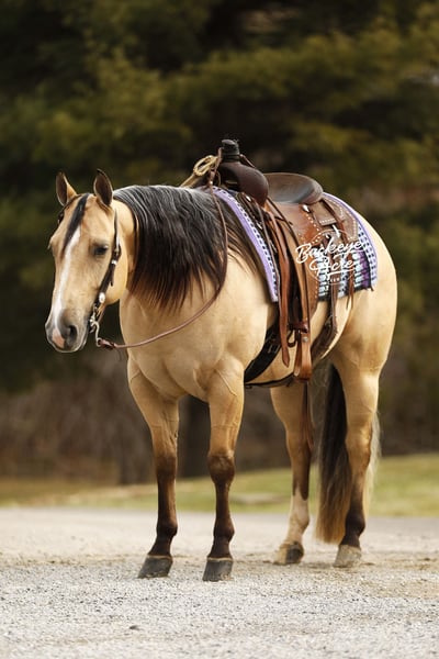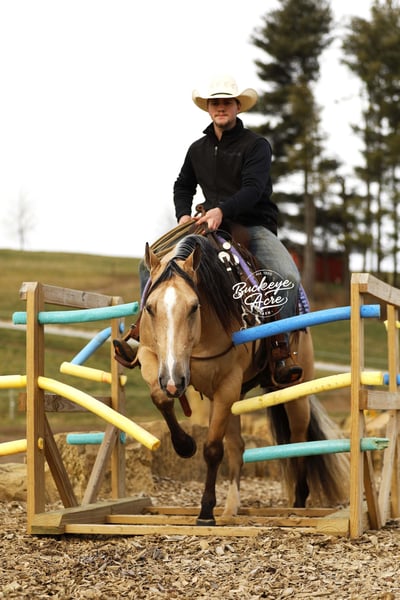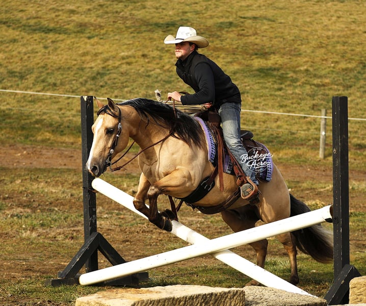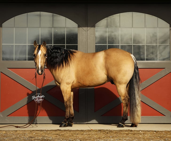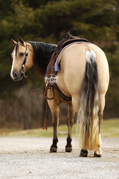 Perfection — and truly, his name could not be more fitting. This exceptional 2021 model AQHA gelding, with breeding going back to Hall of Fame Nu Chex To Cash, is the kind of horse that stops people in their tracks. Standing a strong 14.1 hands, he wears a rare and eye-catching buttermilk buckskin coat, highlighted by one white hind sock and a neat white blaze. His long, flowing mane and tail, complete with that unique coon-tail look, perfectly complement his outstanding, one-in-a-million conformation. Whether he is grazing in the field or standing quietly in the barn, Perfection naturally draws attention and admiration wherever he goes. Beyond his striking looks, Perfection is the total package under saddle. He has been ridden extensively in a wide variety of settings and truly does not miss a beat. From busy state roads with traffic to peaceful trail rides—both alone and in a group—he takes everything in stride with a calm, willing attitude. He has confidently covered miles of trail, navigating uphill and downhill terrain, stepping over downed logs, and crossing creeks and water without hesitation. He has also been used regularly to check cattle, fence lines, and back pastures, showing his dependable, ranch-hand reliability. Perfection offers very good, comfortable gaits that make long days in the saddle a pleasure. His walk and trot are relaxed and steady, his extended trot is smooth and balanced, and his lope is easy, rhythmic, and exceptionally comfortable to sit. He neck reins nicely, side passes with ease, knows his leads, and responds willingly to his rider. He has been ridden in both indoor and outdoor arenas, and new environments simply do not faze him. This gelding is truly versatile. He has been ridden western, English, bareback, and even bridle less, always staying honest and attentive. He has excelled as a heel horse and genuinely enjoys working cattle, making him equally suitable for ranch work, arena riding, or pleasure and trail riding. His kind nature and steady mind make him safe and enjoyable for beginners, seniors, and advanced riders alike. On the ground, Perfection is just as special. He is easy to manage in the barn, stands quietly in the wash bay, and is respectful and cooperative for the farrier. He is often the first one to greet you at the gate, eager for attention and interaction. He truly wants to be your friend and is happiest when he is with his person, ready to go wherever the day may take you. Perfection is up to date on vaccinations, deworming, and farrier care. If this sounds like the horse you have been looking for, please feel free to reach out to Duane at 330-231-2324 for more information or to schedule a day to stop by the farm.