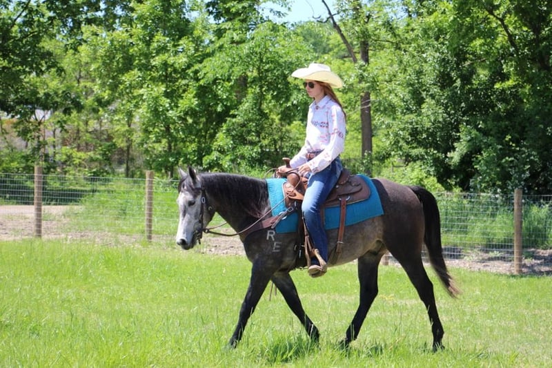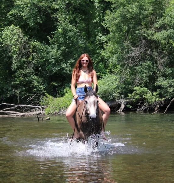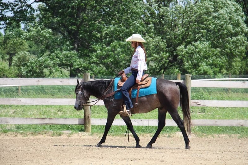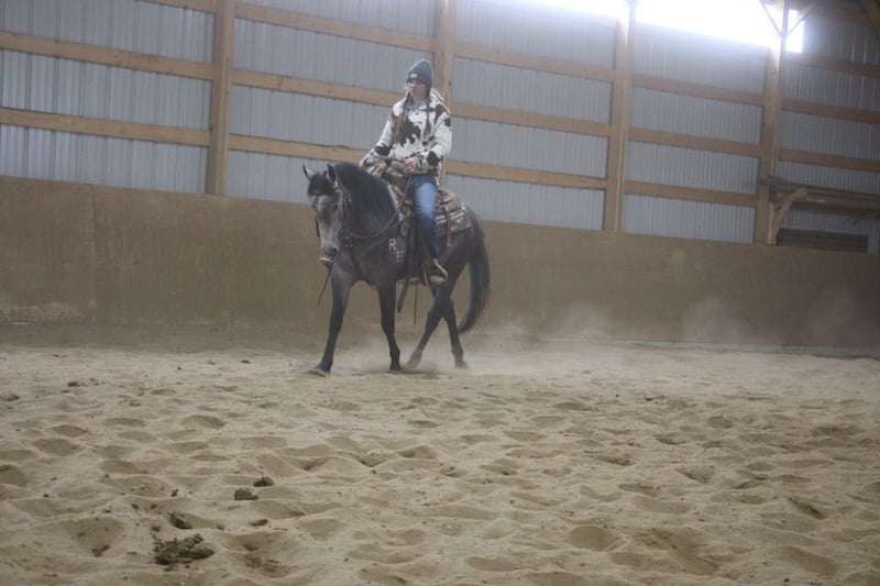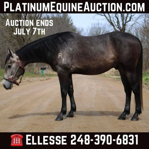 ONLINE AUCTION Place your bids at www.PlatinumEquineAuction.com Starting Bid $3500 Auction ends July 7th, 2024 Need a new saddle? Check out White Rock Saddles on our website or Facebook! Color M Color Me Smart is a stunning, dapple grey with a commanding presence. He is a 14.1hh, 2021 registered APHA gelding that is good enough quality to be competitive in reining and yet gentle and kind enough for the entire family. He is well minded with no buck or bolt. A true gentleman. There is nothing he can’t do, inside or outside the arena. Check out his pedigree; his lines go back to colonial freckles, play gun, and smart little leana. This is our go to horse for adults and kids as young as 6 years old. Smarty has been started with all natural horsemanship methods. He has been used in the arena on a reining pattern. He can lope small circles with his head a foot off the ground in both directions. He has a big sliding stop and an easy, fast spin. Smarty can do flying lead changes and neck reins. Riding without a bridle? No problem! Smarty can steer with your legs! He does quick turn arounds, crosses tarps, and doesn’t mind the flag. He loves the water and will cross any river or swim in the the lake. Smarty will even stand patiently while the little ones climb on. He is so trustworthy the kids saddle and bridle him with ease. You can’t put a price on a safe horse that leaves you worry free. Ready for a trail ride? Grab Smarty! He will cross rivers, bridges and deadfall. He has been ridden along the highway and is good with all the cars, trucks, and farm equipment. He has been ridden in the mountains and open fields. Smarty is ready for round up day!! He has been used to gather cattle and loves to work. He has worked at the stockyards, brandings and drug calfs to the fire. He can work the gate like a champ. He has checked hundreds of miles of fence. His demeanor at the barn is as easy as they come. He comes to the gate to be caught and loads the trailer with ease. He is easy to saddle and bridle and doesn’t mind a bath. Smarty is easy to haul and go down the road. He isn’t affected by the travel. He stands patiently for the farrier and enjoys the kids braiding his hair after his baths. Smarty is sound 100%. He is ready to go in any direction you want to send him. Smarty has had all the right training and has been exposed to everything possible. He is pleasing to the eyes and is as cool as a cucumber. Don’t miss out on this once in a lifetime chance to bring home your new best friend. Please Call Blackstone Stables Ellesse 248-390-6831. He lives in Howell, MI 48855. ONLINE AUCTION Place your bids at www.PlatinumEquineAuction.com Starting Bid $3500 Auction ends July 7th, 2024 Need a new saddle? Check out White Rock Saddles on our website or Facebook!