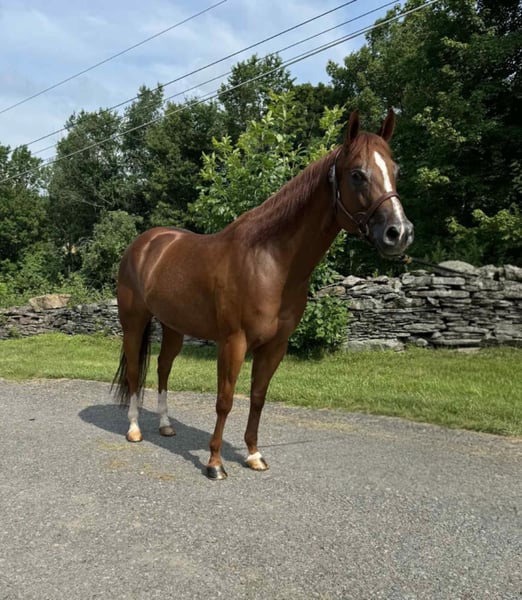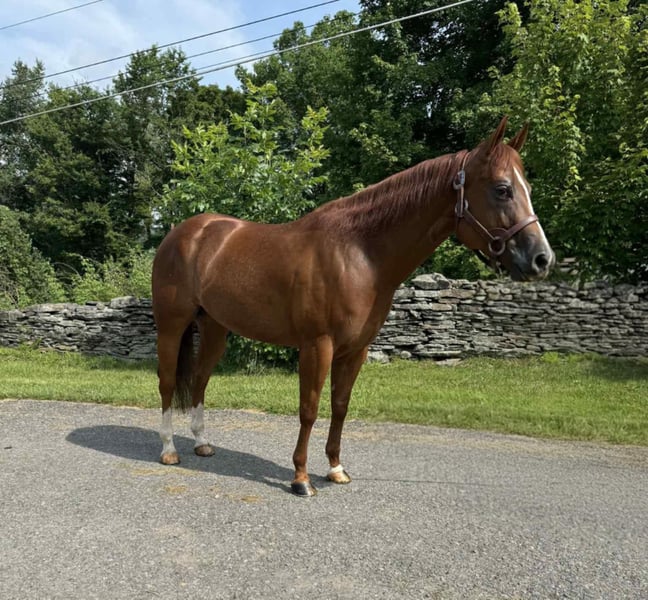ONLINE AUCTION Place your bids at www.PlatinumEquineAuction.com Starting Bid $3500 Auction ends August 3rd, 2025 Need a new saddle? Check out White Rock Saddles on our website or Facebook Night Moves On Ice aka Margarita is a 2021 model registered AQHA Mare by SG Frozen Enterprize out of a Night Deposit Chex mare standing at 14.3. If you are looking for safe, quiet, and as honest as they come, look NO further. Margarita is the horse everyone wishes they had and what 99% of people NEED. Honest, safe, sweet and steady are just a few words to describe this beauty. This 4 year old AQHA chestnut mare stands 14.3hh and comes loaded with a rock solid temperment, plenty of training, killer good looks and that kind eye we all look for. Whether you are a beginner needing something trustworthy or an experienced rider who just wants to enjoy a relaxing worry-free ride, Margarita has your back. Margarita’s favorite speed? Slow and quiet. She’s happy to go for a trail ride, explore the obstacle park, or ride around in the arena. She has been hauled to new environments and always acts like she’s been there a hundred times before. Versatile is a great word to describe Margarita. She’s been ridden western, English, goes quietly in the arena, and will jump something small just for fun. This gal will never ask for more than you are ready to give. She is more whoa than go all day long. Margarita is a great confidence booster, and can take a joke. Her calm energy and no nonsense attitude can allow you to feel safe and enjoy the ride. Margarita will ride alone or in a group, willing to try anything you ask of her. She stands quiet to be mounted, rides off leg pressure, will side pass, stop, back, and has a great spin. If you are looking for a smooth ride, this mare is light and airy on her feet. She will meet you at the gate, and follows you around like a puppy. Margarita stands to be tied , groomed, clipped and bathed. Not a problem to load and be hauled. The mare is gentle around children and very kid safe. This is a horse that will be an angel for the vet and farrier, absolutely does not have a mean bone in her body. She requires no special maintenance. For further questions please contact Jennifer Kuhl 570-589-9280. ONLINE AUCTION Place your bids at www.PlatinumEquineAuction.com Starting Bid $3500 Auction ends August 3rd, 2025 Need a new saddle? Check out White Rock Saddles on our website or Facebook