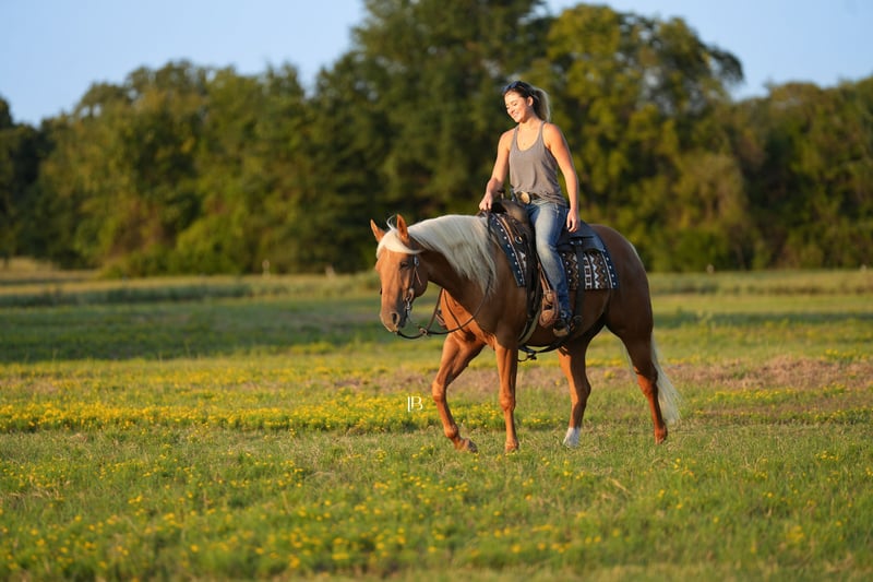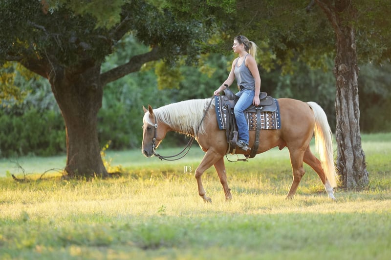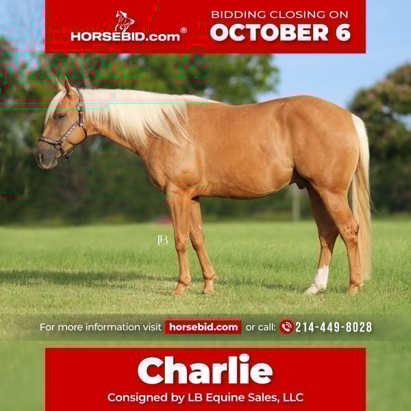 🍂 𝓐𝓾𝓽𝓾𝓶𝓷 𝑨𝑳𝑳 𝑺𝑻𝑨𝑹 𝑳𝑰𝑵𝑬𝑼𝑷 🍂 Happening now thru MONDAY | OCTOBER 6th - Available EXCLUSIVELY on HorseBid's website! For more details and to register visit: www.Horsebid.com CONSIGNOR CONTACT: LB Equine Sales, LLC 214-449-8028 LOCATION: Terrell, TX BREED: AQHA REGISTERED: Yes REGISTERED NAME: Yellowstones Delight COLOR: Palomino HEIGHT: 14.3 AGE: 5 GENDER: Gelding "Meet Charlie – the golden palomino gelding everyone dreams of owning. Charlie checks all the boxes: a friendly, easy-going personality, a quiet and sensible brain, eye-catching good looks, and the perfect size. Whether you’re searching for a safe and steady weekend trail partner, your palomino dream horse, or a versatile show prospect, Charlie is the complete package. This gorgeous gelding is elegant across the ground, consistent in cadence and pace, and eye catching wherever he goes. We’ve had Charlie in our program since May, and he has quickly become our go-to mount for guests and riders of all levels down the trail and in the arena. He has been a great confidence builder down the trail—steady, quiet, and happy to head out on any adventure. Traffic, trains, four-wheelers, cattle, strollers, gunfire, flags—you name it, he takes it in stride. Never worried or fazed by things – he is even forgiving of rider mistake, he stands tied patiently, loads and hauls with ease, and settles right in at new places. He is not easily spooked (as seen in the videos) and can really put up with a lot of commotion! Charlie has been ridden in town, through the Sonic drive-thru, at covered arenas, and across all kinds of terrain. He crosses water, steps carefully over logs, navigates bridges and ravines, and goes out alone or in a group without hesitation. Lead, follow, or fall in the middle—Charlie is content wherever you put him. He’ll happily plod along on a loose rein and wants to be low-headed and relaxed. In the arena, Charlie shows tremendous potential as an all-around show horse. His hack-winning trot and rhythmic canter make him a standout. He’s soft in the bridle, stops off your seat, pivots easily, and carries himself in a beautiful frame. Gentle yet willing, he has the “ready to work” attitude without ever being hot. He could easily shine as a hunter, ranch rider, or all-around mount for anyone. He’s also been used to drag logs, carry flags, had guns shot off him, and ponied other horses—always honest and dependable with any task granted to him. Off property he is a trailer to ring/trail type of ride! He is BRAVE over fences and has a lot of try. Beyond his training, Charlie is a joy to be around. He has a goofy, playful side that makes him easy to love, and his sweet temperament speaks for itself. He wants to be very personable and in your pocket. Prior to joining us, he was a trusted family horse, toted around by little boys—a true testament to his gentle nature. Those boys climbed all over him! He’s excellent to handle, good in a stall, easy to catch (he’ll walk right up and stick his face in the halter), and gets along well in turnout. He can be kept barefoot or shod—sound and sane either way. Up-to-date vet work including coggins, vaccines, dental float, and deworming (all available on our website). Clean radiographs on file to view, along with a recent PPE report – 100% sound. Don’t miss this once-in-a-lifetime gelding—Charlie is the kind everyone wants! He wants to be your favorite buddy and pal. Transportation can be arranged anywhere.
