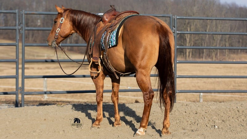 ℳ𝒶𝓇𝒸𝒽 ♦️𝐑𝐈𝐃𝐄𝐑'𝐒 𝐂𝐇𝐎𝐈𝐂𝐄♦️ Happening now thru MONDAY | MARCH 9th - Available EXCLUSIVELY on HorseBid's website! For more details and to register visit: www.Horsebid.com CONSIGNOR CONTACT: North Wind Farm 330-473-3521 LOCATION: Fredericksburg OH BREED: AQHA REGISTERED: Yes REGISTERED NAME: San Buck Tari COLOR: Red Dun HEIGHT: 14.3 AGE: 5 GENDER: Gelding San Buck Tari, “Remy” is a 5 yr old registered AQHA gelding standing at 14.3hh. He is well trained and very fun to ride. Remy has good ground manners, he stands well for grooming, tacking up, and getting bathes. He loves turnout and is good in the pasture with other horses. Remy is a seasoned trail horse. He has been on a lot of trails, he doesn’t mind creeks, steps easily over logs, and is surefooted when going steep hills. He will ride out alone without issues, and also rides quietly in a group! He is used to being around dogs and atvs. Remy will go through the obstacles as well! He can be rode western and bridless! In the arena he is very talented and has the smoothest walk, trot, canter. He knows both of his leads well, he will move off of leg pressure, has a nice stop, back up and pivot! He will side pass, open and shut gates! Remy is very smart and tries his hardest to please his rider!