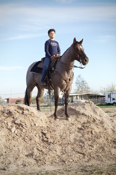 ⚜️𝐓𝐇𝐄 𝓗𝓮𝓻𝓲𝓽𝓪𝓰𝓮 𝐖𝐢𝐧𝐭𝐞𝐫 𝓒𝓵𝓪𝓼𝓼𝓲𝓬⚜️ Happening now thru MONDAY | DECEMBER 29th - Available EXCLUSIVELY on HorseBid's website! For more details and to register visit: www.Horsebid.com CONSIGNOR CONTACT: Rio Select Horses LLC 602-783-3528 or 602-473-7345 LOCATION: Tonopah AZ BREED: AQHA REGISTERED: Yes REGISTERED NAME: BROWNYS ALLSTAR COLOR: Red Roan HEIGHT: 14.3 AGE: 4 GENDER: Gelding 2021 “ BROWNYS ALLSTAR” AQHA Gelding If you’re looking for the "real deal," here he is. Chase is a finished AQHA gelding with a professional reining foundation. He’s spent his life earning his keep, whether it’s under the bright lights of an arena or out doctoring cattle. Chase is broke to death and operates off a whisper. He is a true one-hand horse with "fancy" buttons that are light and responsive. • The Spin: He’ll sit over his hocks and spin a hole in the dirt both ways. • The Stop: He’s got a massive, deep-seated slide stop—he’ll bury his backend and hunt the ground every time you ask. • The Mind: He has a hair-trigger response if you ask for speed, but he’ll drop his head and walk on a draped rein the second you quit him. This isn't just a "pretty" horse; he’s a working partner. Chase has been used for: • Sorting & Cutting: He’s got a natural eye for a cow and holds his ground. • Ranch Chores: He’s been used to doctor and rope out in the open. He knows how to take a joke and stay calm when things get western. • Versatility: He has the miles and the "bottom" to work an all-day shift without quitting. One of the best things about this gelding is his mind. Chase can be taken any direction and is the perfect prospect for whatever you would like him to do. Whether you want to transition him into a high-level breakaway horse, a ranch versatile competitor, or a mounted shooter, he has the foundation and the athletic ability to excel in any discipline you choose. On the trail, Chase is the ultimate insurance policy. He’s been exposed to everything from heavy machinery and barking dogs to rushing water and chaotic environments. • Solid Citizen: He doesn’t have a spook in him. • Independent: He’ll lead the pack or head out solo without getting "buddy sour" or jigging on the way home. • Professional Manners: Stands tied, hauls like a dream, and is a perfect gentleman for the farrier. • Sound & Sane: 100% sound, healthy, and ready to work. • Current: UTD on all vaccinations, Coggins, and dental work. • Loads, unloads, and travels well Whether you want to go win a Ranch Riding prospect class, sort some pairs, or just have the safest, fanciest mount on the trail, Chase is your man. He’s a horse that tries to please his rider every time you swing a leg over him.