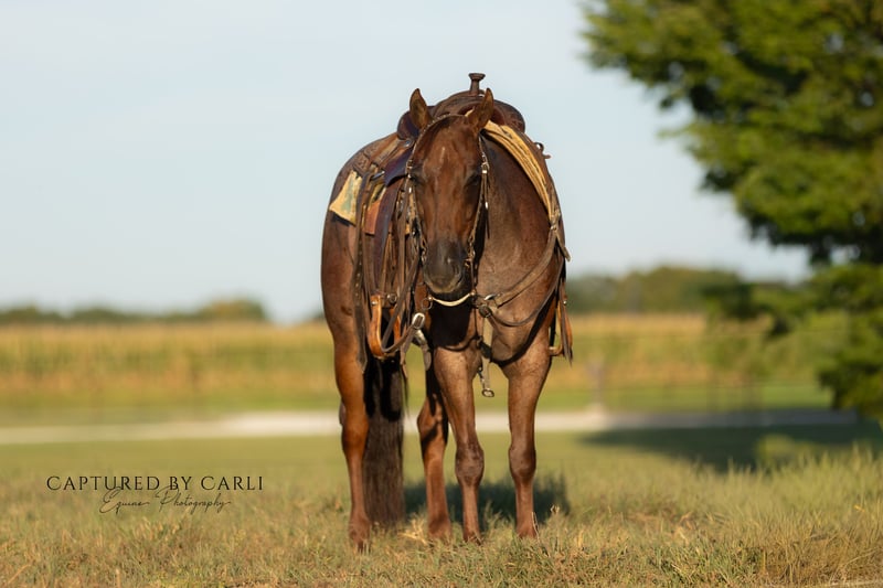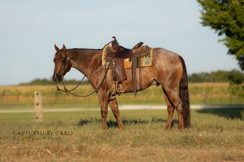 𝐉𝐨𝐧𝐞𝐬 𝐅𝐚𝐦𝐢𝐥𝐲 & 𝐕𝐞𝐫𝐬𝐚𝐭𝐢𝐥𝐢𝐭𝐲 𝐇𝐨𝐫𝐬𝐞𝐬' 🍂𝑳𝒆𝒈𝒆𝒏𝒅𝒔 𝒐𝒇 𝒕𝒉𝒆 𝑭𝒂𝒍𝒍🍂 Happening now thru MONDAY | DECEMBER 8th - Available EXCLUSIVELY on HorseBid's website! For more details and to register visit: www.Horsebid.com CONSIGNOR CONTACT: Jones Family and Versatility Horses 618-535-9966 LOCATION: Lewistown, IL BREED: Quarter Horse REGISTERED: Yes REGISTERED NAME: DIAMOND J BIG FIX COLOR: Red Roan HEIGHT: 14.3 AGE: 4 GENDER: Gelding Woodrow is a striking 4-year-old red roan gelding standing 14.3 hands, and he is every bit as special as he looks. This is a young gelding with the mind, maturity, and seasoning of a much older horse. Woodrow has had extensive formal training, and it shows in every step he takes. He carries a strong reining foundation with big, deep stops, correct turnarounds, fluid transitions, and an exceptionally smooth way of traveling. He stays soft, balanced, and in the bridle, and he rides with presence and confidence. Woodrow is the same horse every single day time off doesn’t bother him, new environments don’t phase him, and pressure doesn’t rattle him. He is quiet, steady, and reliable to the core. We have even shot trap off him with a 12-gauge shotgun, and he never batted an eye. He lays down on command, handles pressure calmly, and nothing seems to excite or bother him. This horse is broke, thoughtful, and trustworthy. Woodrow is absolutely safe for any level rider. He’s forgiving, uncomplicated, and gives his rider a secure and confident feel. He is the kind you simply get on and enjoy no thinking, no tuning, no preparation required. He is a tremendous partner to learn on, grow with, and truly have fun riding. Whether you want to step into the ranch versatility pen tomorrow or take him out for a relaxed weekend trail ride, Woodrow is ready. We have exposed him to cattle, a rope, ranch tasks, obstacles, and miles of outside riding. He has been roped off, tracked the dummy, and handles all ranch situations with ease. He is a gentleman on the ground, gets along well in the pasture, and is simply enjoyable to be around and ride. Woodrow is one of those rare young geldings with the brain, training, and temperament that will last someone a lifetime. He is trained to lay down on command. He has the foundation, the ability, and the mind to go any direction, and the quiet disposition to make him a family favorite. We are very proud to offer him he is the real deal and will bring someone years of joy, confidence, and success.