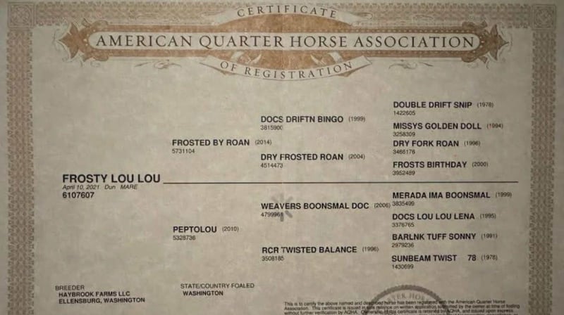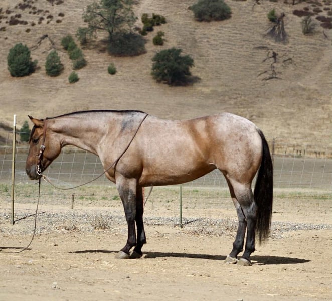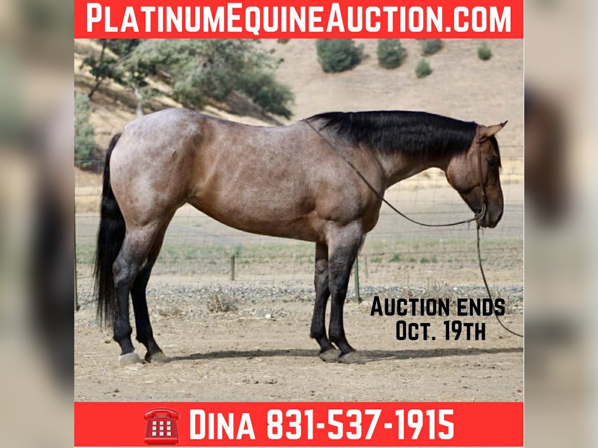 ONLINE AUCTION Place your bids at www.PlatinumEquineAuction.com Starting Bid $3500 Auction ends October 19th, 2025 Need a new saddle? Check out White Rock Saddles on our website or Facebook A Frosty Lou Lou – A Beautiful Dun Roan Mare Who Does It All! Every so often, a mare comes along that has all the right pieces — good looks, the right kind of pedigree, a steady mind, and a willingness to go anywhere you point her. Looking for a mare that turns heads, does her job, and keeps it classy while she does it? Meet Frosty Lou Lou, a 2021 AQHA beautiful dun roan mare standing 15.1 hands and built the way you want one: big hip, plenty of bone, and all the shape to last. She’s as solid-minded as she is pretty — gentle enough for a novice,broke enough to make a pro grin, and just the right age to take in any direction. Lou Lou is the kind you can throw a saddle on, cinch up, and ride off without a second thought. She tacks up easy, ties all day, and stands like a lady whether you’re shoeing her, doctoring one outside, or just stopping to visit. On the trail she’s already got more miles than some horses twice her age. Traffic, wildlife, logs, water, bridges, flags, tarps, even pool noodles and bouncy balls — none of it gets a rise out of her. She’s steady whether she’s riding out solo or in a group, and she’s the type you point at an obstacle and she just says, “Sure, no problem.” She’s been used on the ranch, branded calves, and seen the long days, giving her patience and sense that can’t be faked. In the arena, Lou Lou is started in the heading and shows all the right pieces to make a rope horse: flat across the line, pulls strong to the horn, faces up, and still soft in the face with a natural collection. She stops, backs, and neck reins the way one should. The best part? She’s as safe and gentle as she is talented. A novice can swing a leg over and feel comfortable, while an experienced hand will appreciate her correctness and potential. She’s the mare that can babysit one rider today and go to work for another tomorrow. Her pedigree makes her no accident. By Frosted By Roan (Double Drift / Dry Fork Roan lines) and out of Peptolou (by Weavers Boonsmal Doc, son of Peptoboonsmal), Lou Lou is built on a foundation of durability, cow sense, and brains. She’s got the papers to breed, the build to last, and the mind to do it all. Why Lou Lou is the real deal: • 2021 AQHA dun roan mare, 15.1 hands, stout and correct • Tacks up easy, ties all day, hauls and shoes with no fuss • Safe and gentle for novice riders, correct and talented for pros • Trail steady – traffic, wildlife, logs, water, bridges, tarps, flags • Arena ready – started heading, soft, collected, smooth stop, easy back-up • Ranch proven – branded calves, worked outside, built patience • Pedigree: Driftwood foundation bone x Peptoboonsmal cow sense They say you can’t have it all in one horse — looks, brains, breeding, and a gentle nature. Frosty Lou Lou would like to disagree. Located in Paicines, CA. Call Dina with Longhorn Ranch 831-537-1915 Nationwide shipping available ONLINE AUCTION Place your bids at www.PlatinumEquineAuction.com Starting Bid $3500 Auction ends October 19th, 2025 Need a new saddle? Check out White Rock Saddles on our website or Facebook