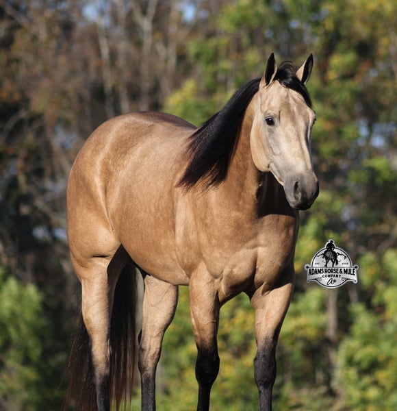 He is consigned to the COWGIRL CADILLACS Sale in Wickenburg, AZ on February 20-21st. You can bid online or bid in person. There is a preview day before the sale or you can come ride him prior to the sale in Mt. Vernon, KY. Register to bid at www.CowgirlCadillacs.com More info at www.AdamsHorseAndMuleCo.com $10000 starting bid Smooth As Pendleton…a little bit of whiskey is said you calm your nerves and ease the tension, just making you more relaxed… there is not a more fitting name for this guy than Whiskey!!! As a 15.2h, 2021 Model with 11 AQHA points to his resume and over $6800 earnings, Whiskey is no stranger to the spotlight as he has been shown extensively and qualified in 2024 for the AQHA World Show in Ranch Trail (which is a ranch and trail obstacle course that involves cattle and log jumps). He rides low headed on a draped rein, lopes perfect circles, takes his leads, does flying lead changes, spins both ways, side passes, and has a good stop. To say the least he has all the moves and maneuvers that a person could dream of. Just as the pressure of the show pen doesn’t bother Whiskey neither does a roaring rodeo crowd of 3000 people, screaming and cheering as the speakers blare Kid Rock’s song “Born Free”, as he lopes around the arena carrying the flag at the grand entry. While at the rodeo Whiskey has been used to sort, pen and load rodeo bulls. The girls also used Whiskey to give “pony rides” on at 4 different rodeos. They had all ages of kids and adults stand in line for a ride on their horses. Obviously, Whiskey knows his way around the show pen and rodeo arena, but this pretty boy loves to get dirty out on the trails, packing the kids through the mud! Whiskey will build your confidence levels out on the trails and make a nervous beginner look like a seasoned pro! He has been trail ridden extensively in multiple states including, Iowa, Minnesota, South Dakota, Kentucky, Tennessee and North Carolina. Steep slopes, deep water, deadfall, boggy mud, all sorts of wildlife… nothing phases him, he is not spooky and he is a master on the trails! Whiskey will take care of his rider in any situation or terrain. Whiskey has been ridden around the ranch, he knows his way around cattle and has been roped off as well. He will hold what you tie to him and doesn’t get nerved up in a bad situation. Whiskey is not spooky and is accustomed to tarps, wind dancers, bull whips and gun fire. Whiskey has been ridden in English tack and will jump across the rails with ease. We have had him through town, the drive thru and he is traffic safe. Whiskey loves to take a bath, get soaped up, get his hair done up in braids and loves to spend time with the kids. If you are looking for a horse to show, a horse to trail ride, a horse to do ranch work on, a horse to jump and a horse to do lessons with… instead of buying six horses just buy the all in one and it will be smooth sailing the rest of the way because nothing is as Smooth As Pendleton!!! Whiskey is available to ride and see in Mt. Vernon, KY until the week of the sale Feb. 16-21. Call for more info or if you have any questions 606-308-2461. He is consigned to the COWGIRL CADILLACS Sale in Wickenburg, AZ on February 20-21st. You can bid online or bid in person. There is a preview day before the sale or you can come ride him prior to the sale in Mt. Vernon, KY. Go to visit our website for more pics and a video www.AdamsHorseAndMuleCo.com AHAMC has been in the horse business and sold horses over the internet since 2005. We have a long track record of success with hundreds of happy customers. We work hard to match riders with the correct horses and specialize in beginner safe, family friendly horses that have been used and checked out by our family! We can set up transportation anywhere in the US and look forward to working with you. Register to bid at www.CowgirlCadillacs.com More info at www.AdamsHorseAndMuleCo.com $10000 starting bid