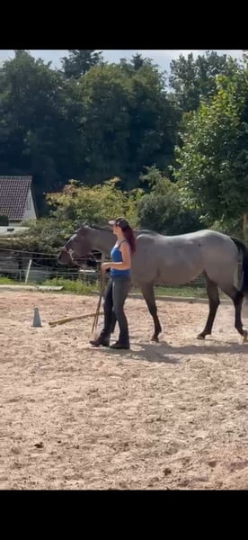 Silver is een zeer leergierige en prachtige ruin, in de speciale kleur Blue Roan, die erg graag werkt. Hij is geboren en opgegroeid in een merrie-koppel. Momenteel staat hij samen met drie merries en een ruin in een open stal. Zijn vader is MJM Salty Blue Ezra, een Hancock-paard, dus een ranchpaard. Silver heeft grote, stevige hoeven, een stevig gebouwd lichaam en is ook geschikt als gewichtsträger. Hij is schmiedenvrij, braaf op de trailer en op de grond getraind, en is als handpaard met zadel in het terrein gereden. Bij interesse graag via WhatsApp, ik reageer niet op berichten, alleen via WhatsApp.