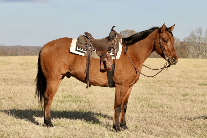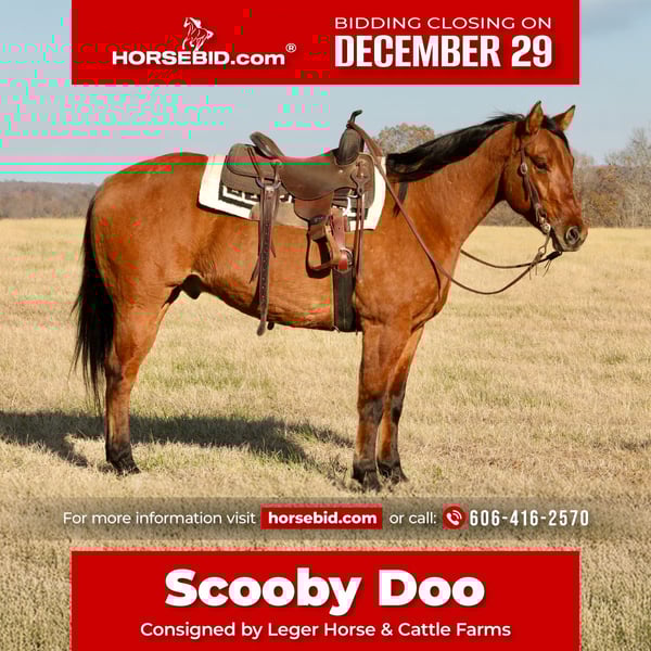 ⚜️ 𝓗𝓮𝓻𝓲𝓽𝓪𝓰𝓮 𝐖𝐢𝐧𝐭𝐞𝐫 𝓒𝓵𝓪𝓼𝓼𝓲𝓬⚜️ Happening now thru MONDAY | DECEMBER 29th - Available EXCLUSIVELY on HorseBid's website! For more details and to register visit: www.Horsebid.com CONSIGNOR CONTACT: Leger Horse & Cattle Farms 606-416-2570 LOCATION: Crab Orchard, KY BREED: Quarter Horse REGISTERED: Yes REGISTERED NAME: SPEED REDJEWELLS7114 COLOR: Dun HEIGHT: 15.3 AGE: 4 GENDER: Gelding “Speed Redjewels7114,” better known as Scooby Doo, is a gorgeous dun quarter horse gelding. He is coming 5 years old and is registered with the AQHA. He is a great-grandson of High Brow Cat and is bred for performance and cattle work. He is agile, athletic and intelligent. He has proven to be a great hand around the farm catching and working cattle. He is even more than that, though. He trail rides the very best, works beautifully in the indoor and outdoor arenas, and is even a trick horse! Scooby stands 15.3 hands tall and has a nice thick build. He is put together very well and works like a fine tuned instrument. We have owned Scooby for about a year now and in that time he has been our ranch horse, trail horse, family and friend horse and trick horse! Scooby is laid back, gentle and friendly. He has a sweet disposition and personality! From rounding up cattle, going on trail rides to showing off his tricks- Scooby’s skills and experience are quite extensive and he is truly an amazing versatile horse! Scooby has spent a great amount of time in the indoor and outdoor arenas. He will one-hand neck rein, walk, trot and lope circles both ways taking the correct leads, has a big stop and works off of leg pressure. He is very soft in the mouth. He will ride on as loose of a rein as you like, but he is also a horse that you can collect up in the bridle. His lope is SO super smooth and enjoyable to ride. We’ve ridden him in a halter and even with a rope around his neck many times! On the trail, Scooby is safe and surefooted. He navigates even the roughest terrain with ease and will go anywhere that you ask him to. Whether it is up and down steep hills, through deep water or mud or over trees and through brush- he will get you where you need to be and do it safely. He will ride in the front or the back, alone or with a group! Scooby is also a trick horse! At your cues and commands, he will lay down and sit up like a dog! Scooby will also follow you around like a puppy at the command to “come.” He will also side pass to a mounting block or whatever you choose to mount from! He is a super intelligent horse and could be easily taught even more things than these! He does have some buttons but he is super easy to operate! Scooby is also a big help around the farm! He is usually the first horse to be chosen when there is cow work to do. He was born with cow sense and enjoys the job. He has been used to check fences and cattle very often and is no stranger to a rope and a crazy cow and he has been pasture roped off of many times. He has been used at the stockyards as well. He is handy when opening and closing gates as he will side pass and allow you to do this without dismounting. Anything from sorting, penning and loading trucks- he is familiar with it. He has also been exposed to a lot of wildlife such as deer and turkey. He is also used to the goats, cats and dogs that run in and out of the stall and pasture with him. He is friendly to people, other animals and other horses. Scooby is also great with tarps, whips and guns as you can see in the video. He is completely traffic safe as well. He is clean and quiet in the stall, and gets along well with other horses in the pasture. He is easy to catch, he will come to you every time you call! Scooby has also been hunted off of and does great leading dogs, riding in the dark, bright lights, gun shots and barking dogs. He stands patiently in the cross ties and for the farrier. He loads and hauls wonderfully and loves grooming and a bath! Scooby rides amazing in both English and western tack. He is a super versatile horse. He could do anything! From ranch and cattle work or reining in the western world to jumping or dressage in the English world- his potential is unlimited. We would love for you to schedule a visit to see him for yourself! Be sure to watch our full YouTube video to see all of this and more. We can arrange shipping anywhere in the US. Feel free to call or text with any questions!