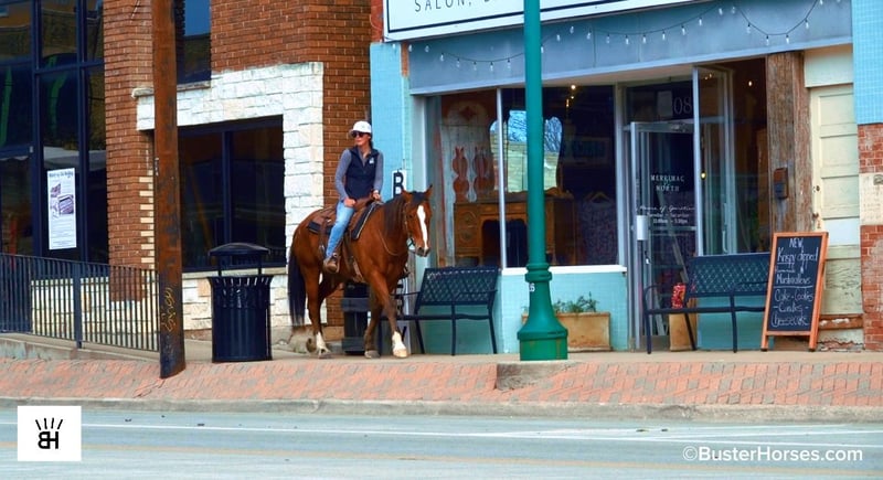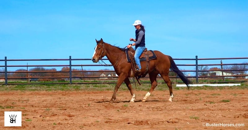 "AVAILABLE ON ONLINE HORSE AUCTION AT www DOT PlatinumEquineAuction DOT com BIDDING OPEN NOW thru SUNDAY | MARCH 8TH! *Final price will be determined on auction site* CONSIGNOR CONTACT INFO: Buster Horses 214-605-7174 LOCATION: Weatherford, TX Seven is a really cute five-year-old bay gelding with three white socks, a blaze, and a unique birthmark on his right hip that makes him easy to recognize. He is extremely kind-natured and currently one of our riders’ absolute favorites to swing a leg over. Seven gets better with every ride and truly enjoys one-on-one attention, bonding closely with his rider. He was recently used on Paramount sets as a background horse and handled the exposure well. He is quiet-minded but still young, so he does best with a rider who will give him a job and continue progressing him. Seven has a great forward stride, big bone, and the athletic ability to go multiple directions, whether that’s barrels, roping, ranch work! He has a nice stop, an easy way of going, and now rides relaxed on a loose rein and in a frame. He is confident out on the trails alone and just as happy in a group, covering ground with ease and enjoying having something to do. On the ground, he is easy to catch, lead, load, and haul, stands relaxed to saddle and bridle, and stands flat-footed for mounting and dismounting. He has no vices or bad habits, is easy to bathe, and has been great for the vet, farrier, and dentist. He just received a fresh set of shoes, was recently power-pack wormed, and saw the dentist last week - so he is current and ready to go. If you are looking for an affordable spring project with all the hard work already done and just the right age to polish and finish your way, don’t overlook Seven. We will continue riding him right up to sale day and, we will post updated video footage. Call Ashley with Buster Horses 214-605-7174 MORE pictures and videos at: BusterHorses.com/Seven Located in Weatherford, TX ~ West of Fort Worth, TX 1 hour from Dallas / Fort Worth International airport …and we can help with quickly arranging affordable shipping to any buyer’s location ~ He is an easy day trip, or fun overnight trip to come and try out, from anywhere! We are experienced, knowledgeable sellers, and we can help with quickly arranging affordable shipping to any buyer’s location – we have experience shipping worldwide – including regularly to Hawaii, Canada, Mexico, Europe, and South Africa.