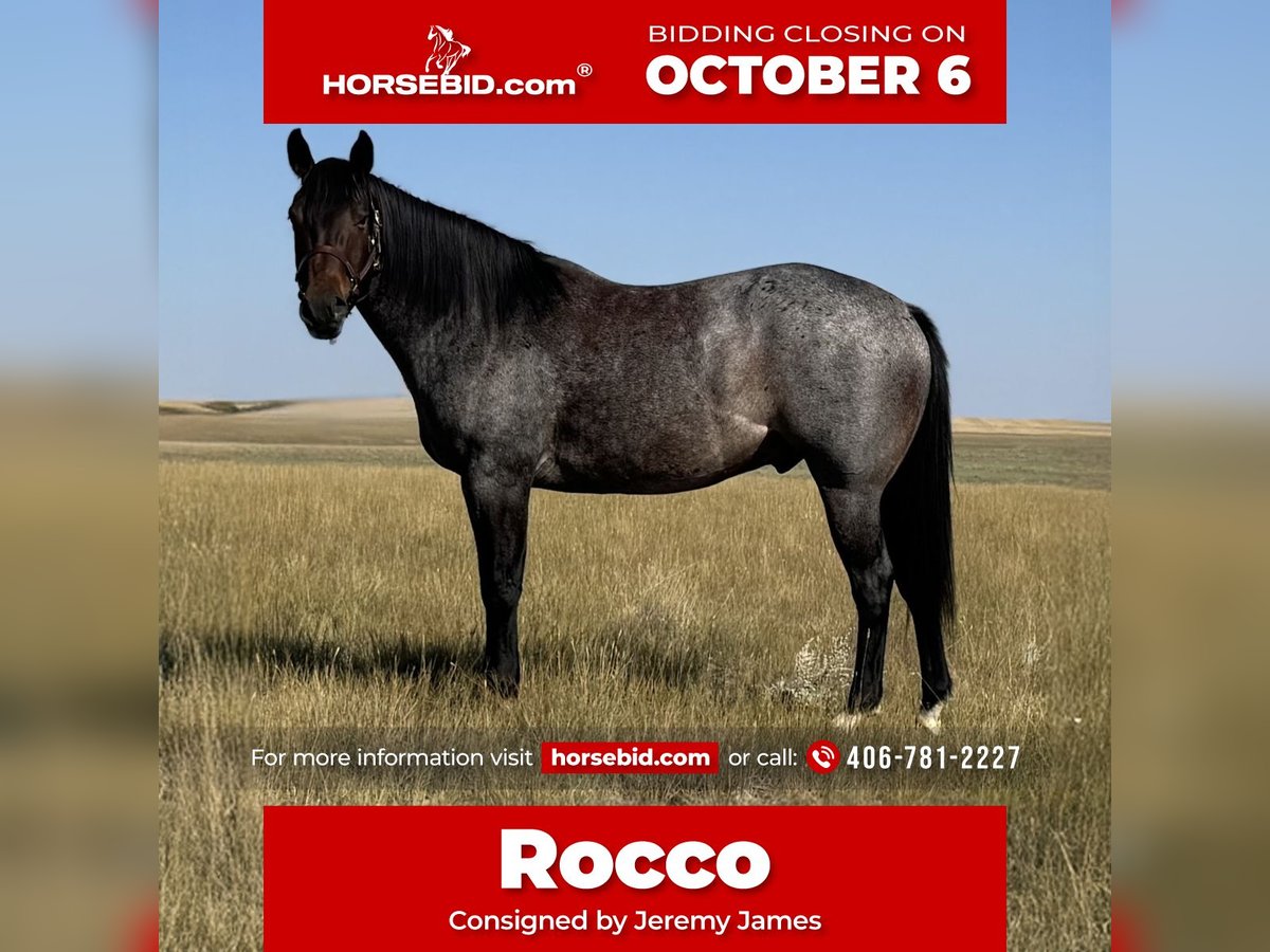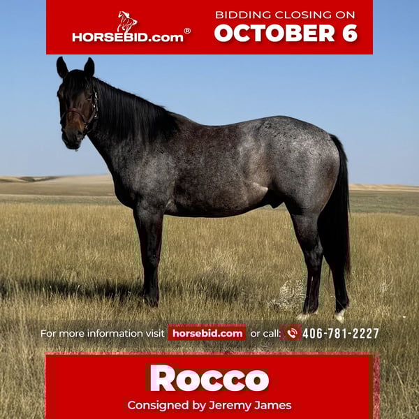 🍂 𝓐𝓾𝓽𝓾𝓶𝓷 𝑨𝑳𝑳 𝑺𝑻𝑨𝑹 𝑳𝑰𝑵𝑬𝑼𝑷 🍂 Happening now thru MONDAY | OCTOBER 6th - Available EXCLUSIVELY on HorseBid's website! For more details and to register visit: www.Horsebid.com CONSIGNOR CONTACT: Jeremy James 406-781-2227 LOCATION: Power, MT BREED: Quarter horse REGISTERED: Yes REGISTERED NAME: ROLLING POCO ROCCO COLOR: Bay roan HEIGHT: 15 AGE: 4 GENDER: Gelding ROLLING POCO ROCCO Meet Rocco. He is a 2021 AQHA gelding standing at 15 hands. This stout flashy fella is calm minded and very patient. He is perfect for beginners, fun for intermediate riders and solid for advanced riders. Rocco is ranch raised and has been around cattle his whole life. He moves cattle or horses on a regular basis. He knows his job when he gets into a branding pen, his presence is steady in the stressful environment. He does well for young learners as he is very patient. Not much upsets Rocco. He makes a great horse for lessons with the right balance of whoa and go if you are unsure of your riding abilities. He is great at boosting the confidence of any rider. Rocco does not hesitate with any challenge given to him. He crosses water easily and adapts to any terrain in front of him. You can open and close gates off of him, side pass with ease and he has perfect manners on the ground. Rocco is easy to catch, very gentle, stands quiet for saddling, mounting and he is excellent for the farrier. He is a gentleman to load, unload backing out and haul in the trailer. He doesn’t bat an eye having to work on his own, and he works well around other horses. Rocco is eager to please and has an honest heart. He will make a fantastic addition to any family! Rocco is located in Power, Montana - we are happy to help get you in contact with transportation for across the country. For more information call Melissa James at 406-781-2227