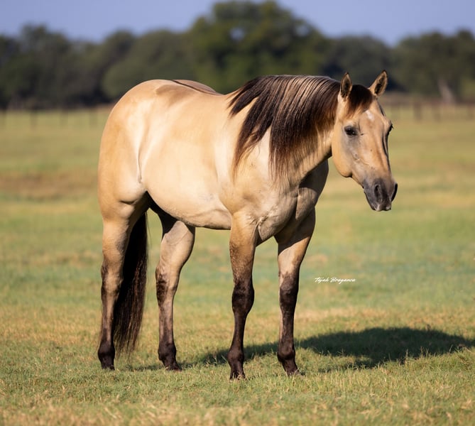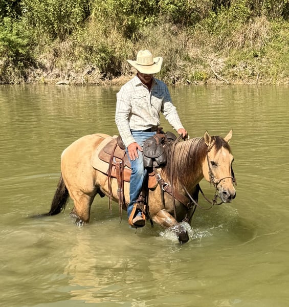♦️ 𝐭𝐡𝐞 𝐀𝐌𝐄𝐑𝐈𝐂𝐀𝐍 𝓕𝓪𝓵𝓵 𝓒𝓵𝓪𝓼𝓼𝓲𝓬 ♦️ Happening now thru MONDAY | OCTOBER 20th - Available EXCLUSIVELY on HorseBid's website! For more details and to register visit: www.Horsebid.com CONSIGNOR CONTACT: JP Performance Horses 817-901-6596 LOCATION: Weatherford, TX BREED: Quarter Horse REGISTERED: Yes REGISTERED NAME: Bar Poco COLOR: Buckskin HEIGHT: 15.1 AGE: 5 GENDER: Gelding 🐴 Meet Tigger – Your Forever Heart Horse Everyone dreams of that horse with the puppy-dog personality and endless talent—and Tigger is exactly that. At just 5 years old, this stunning AQHA buckskin gelding already checks every box for a true lifelong partner. Tigger is the first to meet you at the gate, love shining in his eyes, always eager for your attention. His golden coat and distinct tiger stripes on his legs make him a true standout wherever he goes. He’s been in consistent training at the ranch and continues to thrive. Whether it’s crossing water, navigating traffic, working cattle, or heading out on a long trail ride, Tigger takes everything in stride. We’ve also started him over jumps—he absolutely loves it and is confidently clearing 2 feet with ease. Tap his front feet and he’ll stretch out for you to climb on, standing quietly until you’re ready to move off. He’s calm, confident, and never spooky—safe for any level of rider. He easily picks up his leads, has a nice stop, is beginning to spin, and neck reins with just one finger. This gelding has all the right buttons to excel in AQHA Ranch Trail, Ranch Pleasure, or even English and jumping classes. The sky truly is the limit with Tigger. Tigger loads and unloads easily, stands quietly for the farrier, and even enjoys bath time! His sweet, gentle nature makes him a perfect fit for the whole family or even therapy work. Whether you ride him every day or give him a few weeks off, he’s always the same dependable, easy-going partner. Absolutely nothing phases this horse—he takes life in stride. We have given many riding lessons to beginners on him. He has the smoothest trot and lope and is very easy to ride. With his soft expression, kind eyes, and willing heart, Tigger isn’t just a horse—he’s your next best friend. ⸻ ✨ Quick Facts: • Age: 5 years old • Height: 15.1 hands • Coggins: Current • Teeth Floated: May 2025 • Temperament: Exceptionally sweet, calm, and family-safe If you’re searching for that once-in-a-lifetime horse—safe, reliable, and full of personality—Tigger is it. 📞 For more information or to schedule a visit or FaceTime call, contact Jackie with JP Performance Horses at (817) 901-6596. 🚛 Shipping can be arranged anywhere.