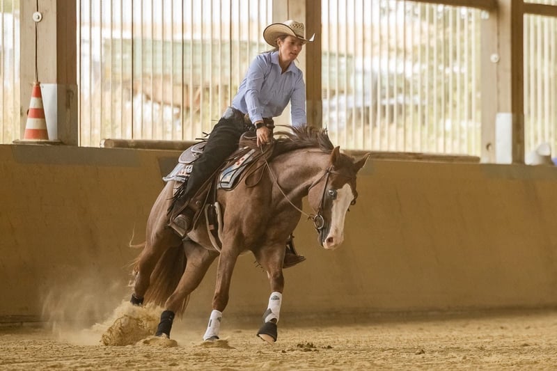 Zum Verkauf steht ein talentierter Quarter Horse Wallach, geboren im Mai 2021. Er überzeugt durch sein auffälliges Roan-Red-Farbkleid sowie ein Stockmaß von ca. 158 cm. Der Wallach wurde von Anfang an von Profis ausgebildet und geritten und verfügt über eine sehr solide sowie altersgerechte Ausbildung. Er ist bestens für den Reining-Sport geeignet. Die Manöver zeigt er mit Leichtigkeit, guter Balance und viel Motivation. Durch seine guten Gänge ist er auch sehr Interessant für Ranch Klassen. Außerdem ist er brav im Gelände sowohl in der Gruppe als auch alleine. Turniererfahrung ist vorhanden, zudem ist er für Starts auf der German Open qualifiziert. Charakterlich ist er verspielt und vorwitzig, dabei aber stets vertrauensvoll im Umgang. Er ist freundlich und unkompliziert beim Putzen, Satteln und Reiten und zeigt sich menschenbezogen sowie lernwillig. Der Wallach ist gesund, regelmäßig geimpft und bestens gepflegt. Bei ernsthaftem Interesse stehe ich gerne für weitere Informationen zur Verfügung. Probereiten ist nach Absprache möglich. Züchter & Besitzer: 0176 22960290 0163 8718033 Trainer: 0176 62702656 Eufinger95@web.de
