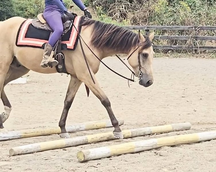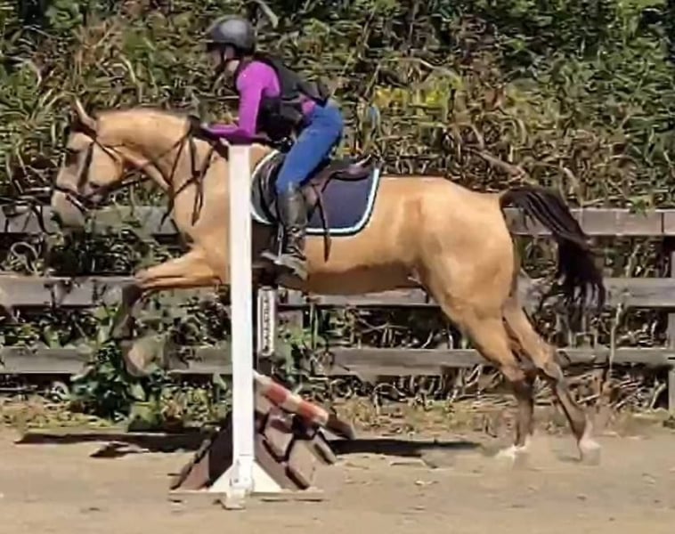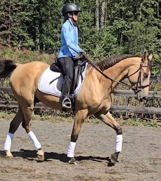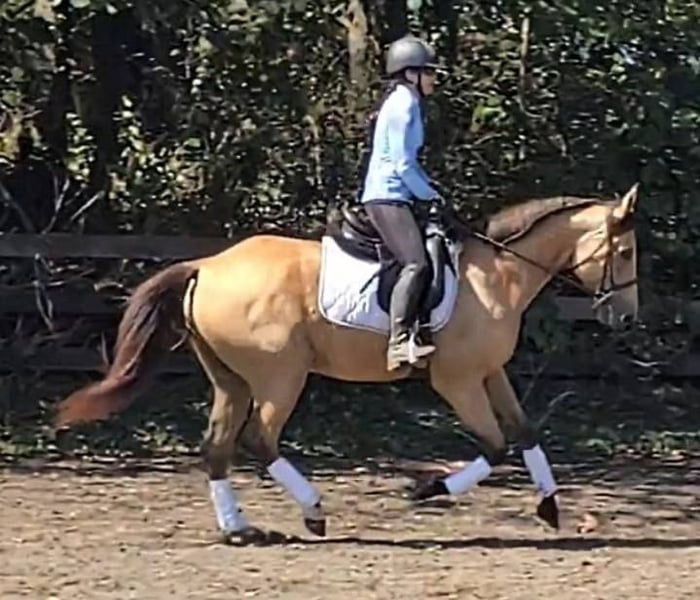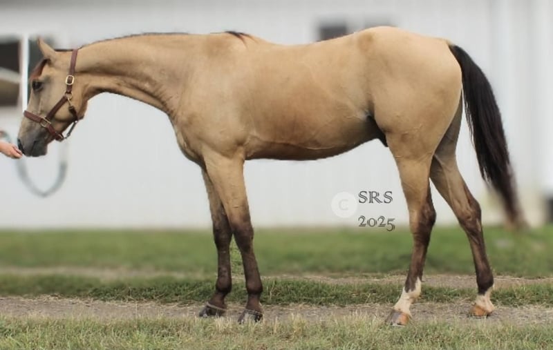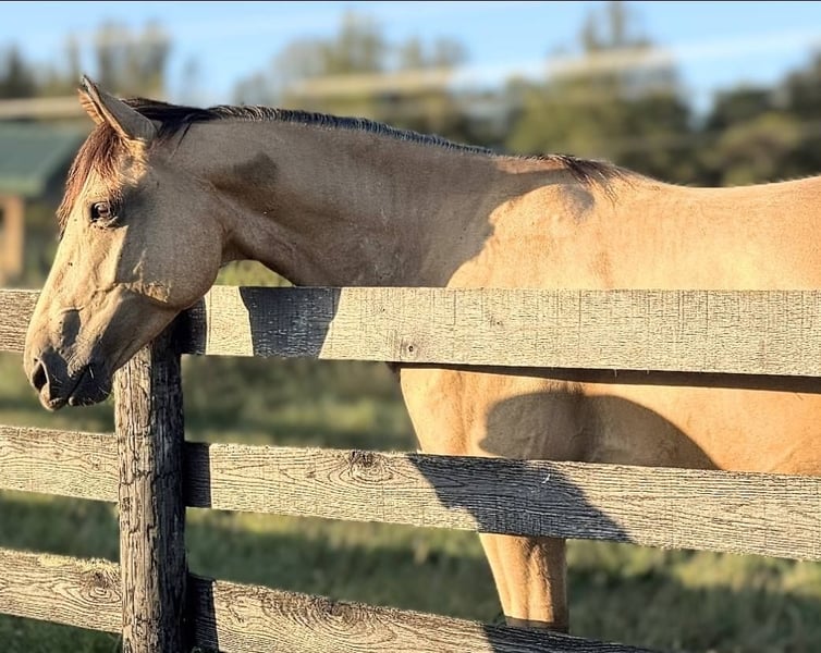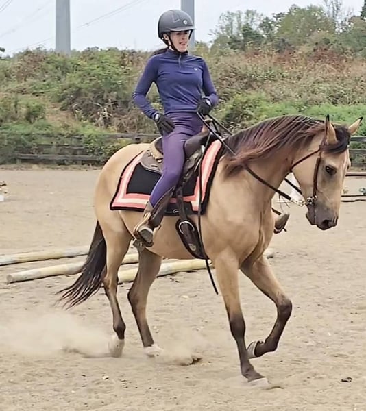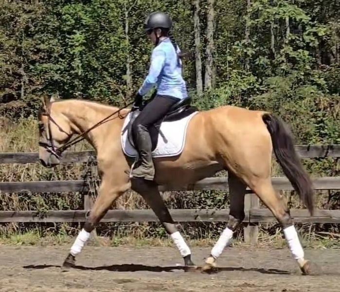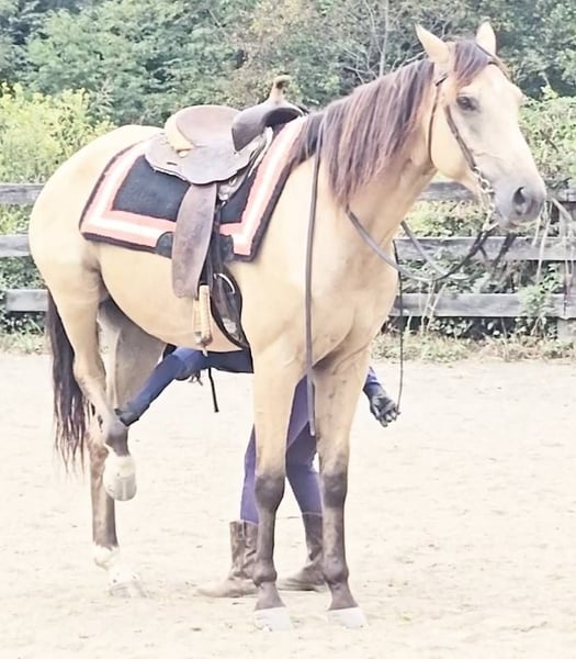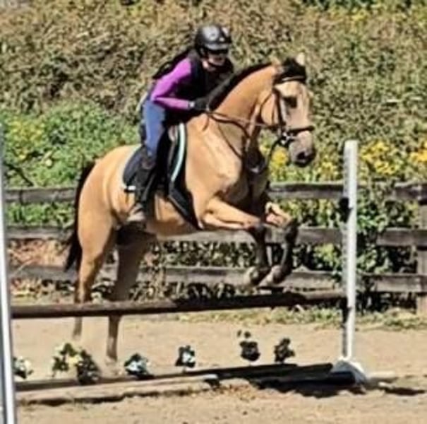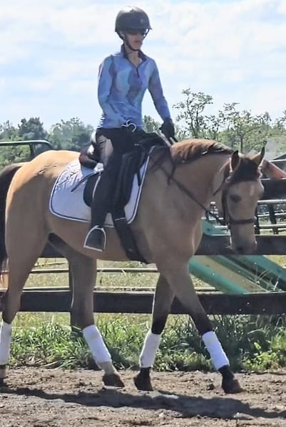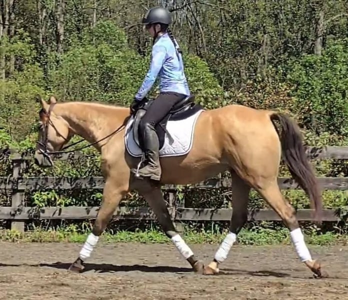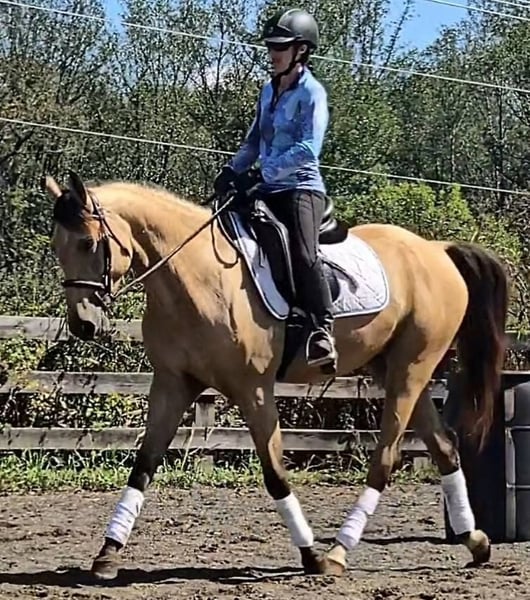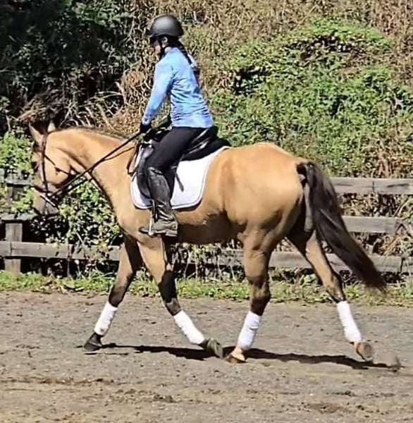 "AVAILABLE ON ONLINE HORSE AUCTION AT www DOT MagicHorseAuction DOT com BIDDING OPEN NOW thru TUESDAY | November 11TH! - BUY IT NOW AVAILABLE! *Final price will be determined on auction site* CONSIGNOR CONTACT INFO: Nicole Ingrassia 571-289-2947 LOCATION: Jeffersonton, VA "Ripple In Time, aka ""RIPLEY"" Ripley is a beautiful, eye-catching buckskin grade QH Appendix gelding. He stick measures at the perfect size of 15.3H, making him big enough for many sizes of riders while also being a manageable size for more petite riders as well! Ripley is 5 years old, coming 6, and he has his whole life ahead of him. This bright and promising gelding has already been lovingly trained in both Western and English disciplines. Ripley will 1-handed neck rein, pick up the canter from the walk, side-pass, has a great stop, and is responsive to cues from the seat, leg, to bit pressure and moves off the leg without needing spur or crop. Ripley is one of the most comfortable horses I have ever ridden! He is butterly smooth to ride, sitting his walk trot canter is like silk! In English tack, Ripley has a foundation in dressage, and is currently schooling training and first level. He loves having a job to do and does not get bored with arena work and he loves dressage! He is a gorgeous mover with a lovely flatkneed trot, and he will happily frame up onto contact or go on a loose rein. Ripley has also been trained over jumps, and he canters a lovely course of jumps with fillers and solid obstacles. He jumps out of stride and has a ""hunter round"" look to him and he is suitable to continue in the hunter ring if his new owner wishes. Ripley has very nice manners, is easy to catch, likes attention, and has no vices. He is easy to have around, not a hard keeper, and he is not on any maintenance. Ripley is healthy and sound and clean legged with no blemishes. He has not had any injuries or illnesses and he is healthy and UTD on vaccines, dental, deworming, farrier, and coggins. We have clean x-rays on file for Ripley available as a courtesy, and buyers are welcome to do their own PPE as well at their expense. Ripley loads in a trailer, ships, ties and cross-ties, lunges, bathes, is not afraid of clippers, gets along well with others in turn out, can be stalled or live out, and is a maintenance-free kind of guy. If you are looking for a quality, talented, sweet gelding, a buckskin on top of everything, don't miss out! Please reach out with any questions or if you would like to come ride him. We are also happy to assist with a video call with interested buyers. Don't miss out on the horse of your dreams!