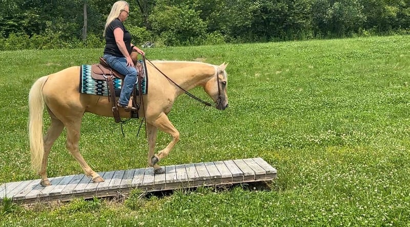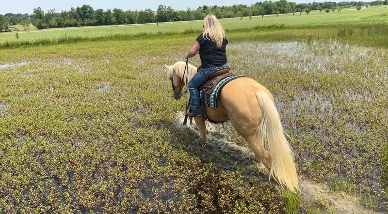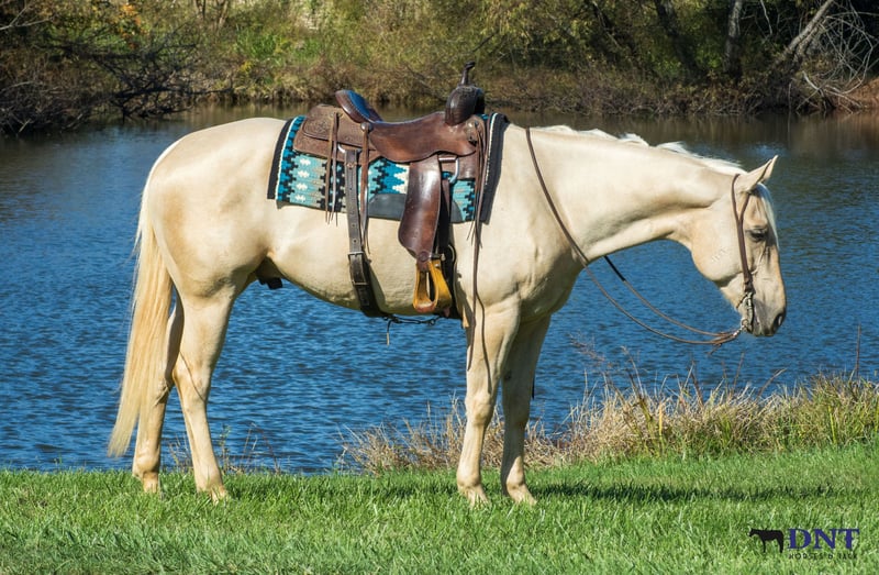 ⚜️ 𝓽𝓱𝓮 𝐇𝐨𝐫𝐬𝐞𝐦𝐚𝐧'𝐬 𝓢𝓱𝓸𝔀𝓬𝓪𝓼𝓮⚜️ Happening now thru MONDAY | DECEMBER 1st - Available EXCLUSIVELY on HorseBid's website! For more details and to register visit: www.Horsebid.com CONSIGNOR CONTACT: Tasha Ijames 270-844-2400 LOCATION: Henderson KY BREED: Quarter Horse REGISTERED: Yes REGISTERED NAME: RWS Rapid Dry 221 COLOR: Palomino HEIGHT: 15.3 AGE: 5 GENDER: Gelding Peanut AQHA 2020 RWS RAPID DRY 221 Peanut is a gorgeous 5 year old palomino gelding standing 15.3 hands tall. Peanut isn't just an eye catcher he is very broke and rides like one should. He will W/T/L, side pass and works off leg pressure. Peanut will walk all day if asked. He has a nice slow trot to him and transitions to a nice smooth lope. Peanut changes leads, circles with speed control and has a beautiful extended trot that would be ideal for the ranch riding! He neck reins with one hand or you can ride him two handed, responsive to leg cues, backs and has a big stop when asked. He is out standing on the trails and has been trail ridden through many different types of terrain. He is sure footed and honest. Peanut will cross creeks, go through any body type of water, thick brush, logs, bridges, rough terrain, up and down cliffs with ease and has been through all the obstacles. He has been rode on the road and is use to all kinds of traffic, heavy machinery and ATV’s. You can ride Peanut out alone with ease or with other horses. Peanut is young enough to go any direction you want. He is eager to learn. Peanut will stand still for you to get on him from the ground or a mounting block. He stands to be groomed, fly spray, stands still to be saddled, takes the bridle with ease, bathes good, loads like a dream, clips great, and stands for the farrier. We invite anyone and everyone to come meet and ride Peanut at our barn in Henderson, Kentucky. We are happy to assist with transportation arrangements. For any questions about Peanut please contact Tasha 270-844-2400