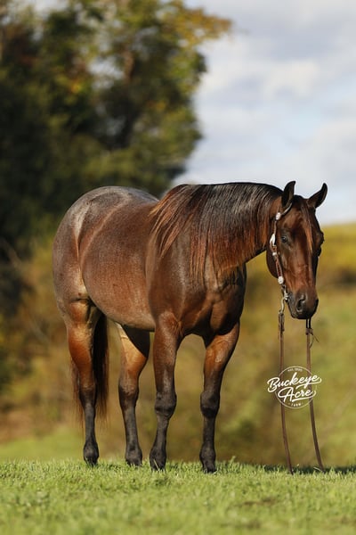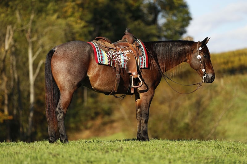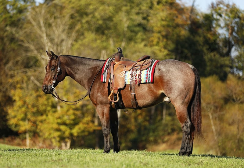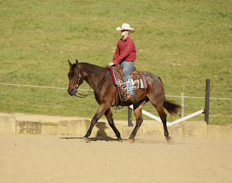 Niko, a 2020 model bay roan AQHA gelding standing a solid 15 H