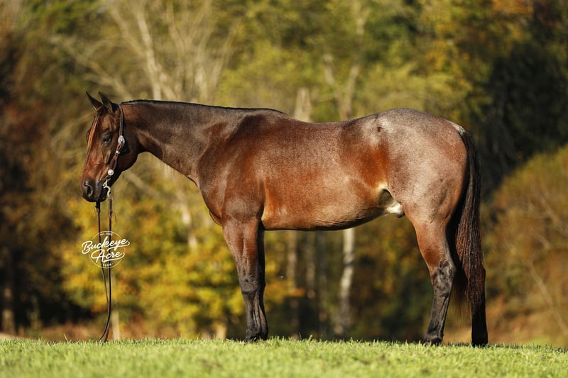 Wow – Meet Niko, a 2020 model bay roan AQHA gelding standing a solid 15.3 hands tall — a horse that turns heads for both his stunning color and his dependable, steady nature. For the past year, Niko has been one of our trainers, Eric’s, personal horses, proving his reliability, versatility, and outstanding temperament day in and day out. Niko has been on miles upon miles of trail rides — from peaceful moonlight rides to steep hills, over logs, through creeks, and even deep water — and he takes every step in stride without missing a beat. He’s been ridden by beginners, kids, and advanced riders alike, always confident, calm, and willing, whether out alone or in a group. Ride him once a week or once a month, and he’ll be the same dependable partner every time. In the barn or pasture, Niko is a complete gentleman who loves attention and stands quietly for grooming or tacking. Under saddle, he’s smooth and responsive with a one-hand neck rein, three good gaits, and an easy side pass right to the mounting block to make getting on effortless. He’s been ridden in both indoor and outdoor arenas, Western, English, and bareback. Niko is also broke to drive. Whether you’re hitting the trails or taking a quiet drive down the lane, he’s steady and reliable. He’s desensitized to tarps, jugs, whips, and gunfire, and completely traffic safe, even on busy state roads. He’s also been used to check cows and fence lines, showing his versatility and work ethic. If you’re looking for a horse that truly does it all — rides, drives, trails, and works — and does it all with a quiet, willing heart, Niko is your guy. Safe, sound, and suited for any level of rider, from beginner to senior or advanced, he’s the kind of gelding you’ll look forward to spending time with every single day. If this sounds like the horse that you have been looking for , Please feel free to reach out to Duane @ 330-231-2324 for more information or to Schedule a day to see him in person.