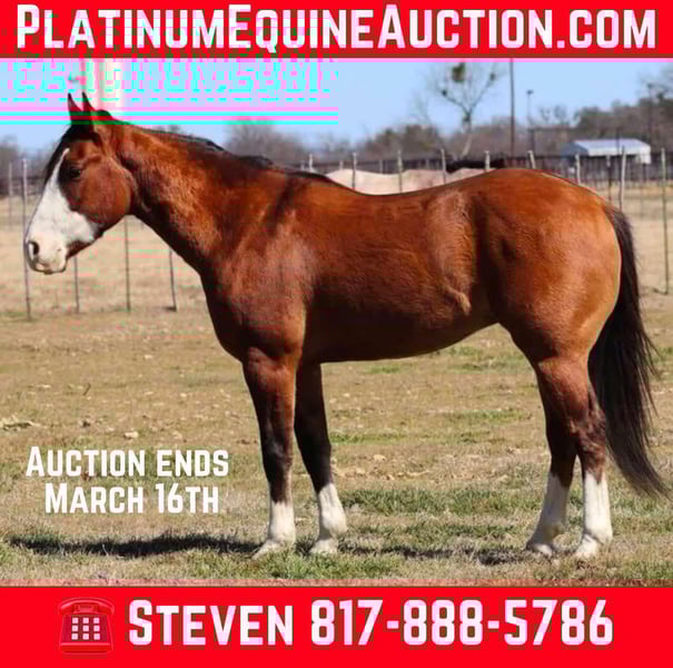 ONLINE AUCTION Place your bids at www.PlatinumEquineAuction.com Starting Bid $3500 Auction ends March 16th, 2025 Need a new saddle? Check out White Rock Saddles on our website or Facebook! Pyro is an adorable gelding with he’s entire life in front of him! He stands an easy 14.1 and is just 5 years old! This cool guy has done quite a bit in his short life! He has been in the cattle drives at the very busy, downtown, Fort Worth Stockyards. Pyro has been up and down the trails and is so willing! He literally goes anywhere you point him and never misses a beat! Pyro has been used outside on a ranch a bit and has been started on the smarty sled for roping as well. His main rider has been a handy 9 year old girl! He is very light in the face and a very pretty mover! Located in Weatherford Texas, but can help with delivery! Please call or text Steven Jones 817-888-5786. ONLINE AUCTION Place your bids at www.PlatinumEquineAuction.com Starting Bid $3500 Auction ends March 16th, 2025 Need a new saddle? Check out White Rock Saddles on our website or Facebook!
