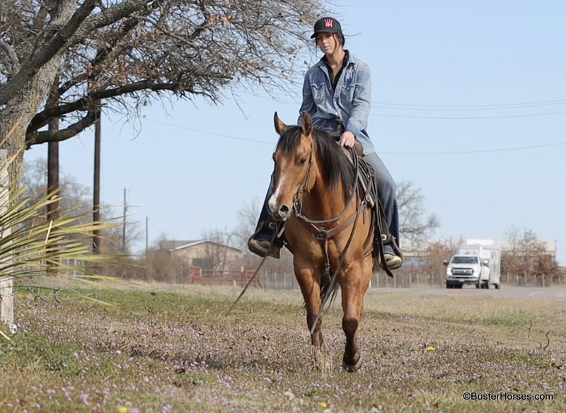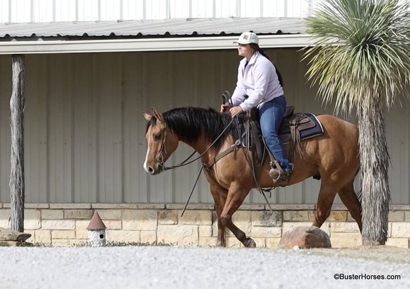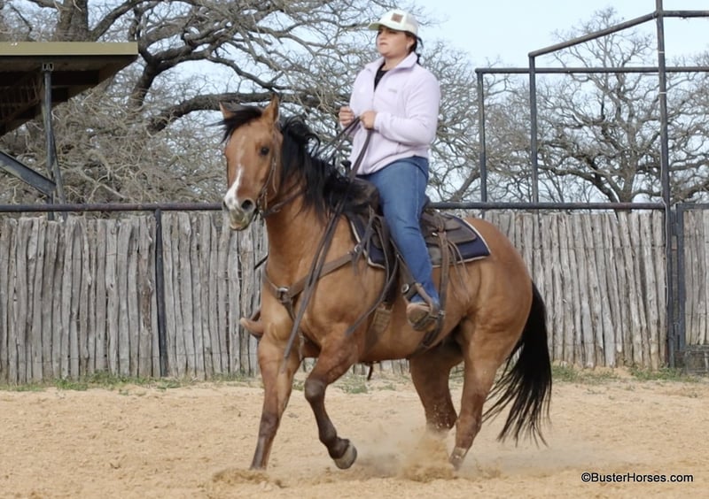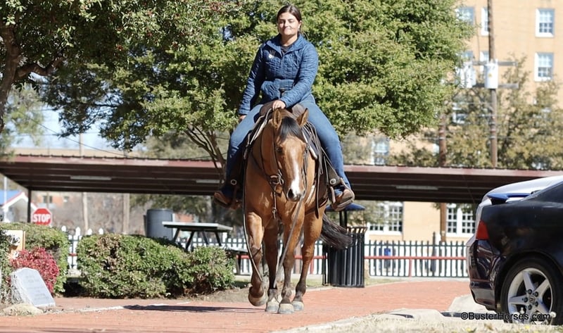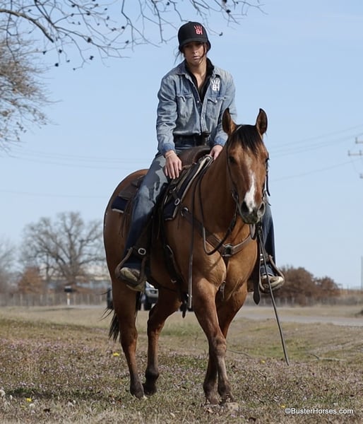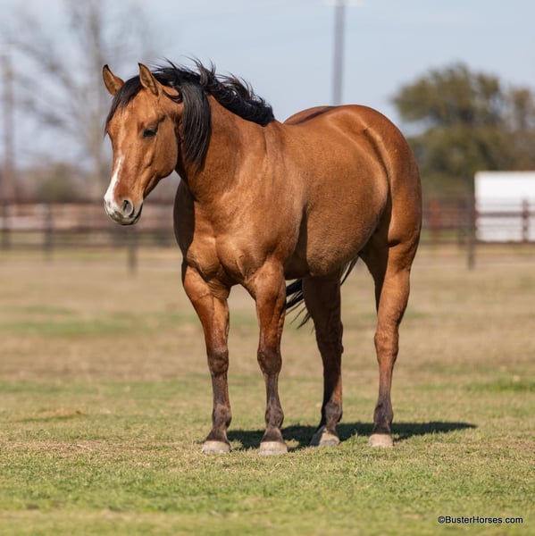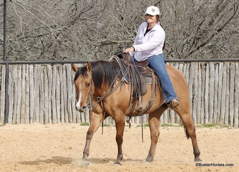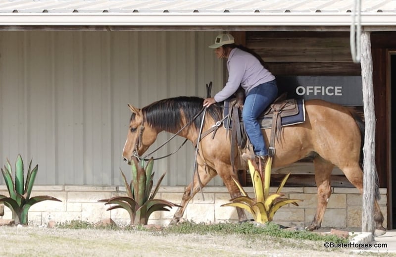 ONLINE AUCTION Place your bids at www.PlatinumEquineAuction.com Starting Bid $3500 Auction ends March 23rd, 2025 Need a new saddle? Check out White Rock Saddles on our website or Facebook! Forest is an absolutely GORGEOUS young dun gelding!!! He is as stout as he is tall, he is only 14.2, but has massive bone and body, to be able to carry any size rider very comfortably and fill out the longest of legs. He is a HUGE horse – but he is still super easy to step on and throw your saddle on at only 14.2 Hands. He is classic, old-school cowboy cool, they don’t make many of them like this anymore! He is only 5 years old and he has his entire life in front of him, for his next family or rider to enjoy him for a very long time. He has had a real job out in West Texas working the ranch and in the feed lots, that’s why he’s so broke!!! He has also been lightly started in the roping pen. He is an absolute pet dog and he would love to end up in a family/ pet / companion type of home. He loves attention… he’s the one you can put with a group of awful to catch horses… and he’ll help you catch the other horses! He has an adorable personality and he seeks being with people and having a job. He was started right with an excellent solid foundation, to be ready to go on from here and smoothly add any sort of finish and polish to – he is ready right now to go season for any particular job that you have for him. He is great riding out alone and has been many miles alone. He is very confident and eager leaving the barn, leaving the trailer, or leaving a group of horses – he could care less, he enjoys going somewhere, and has very little horsiness to him. He is absolutely great in town, very friendly and curious – he seems to really enjoy the new sites and scenes. He has a great walk, trot, lope, stop, and turn-around – he works a gate like a pro, and does it all looking fancy and relaxed, with his head level and on a loose rein. We love this guy, and we sure wish we could consistently find 25 geldings like this every single month – our job would sure be super-duper easy! If you have any questions about him, please do not hesitate to call, we will be happy to discuss him in more detail and answer any specific questions you have! Forest is barefoot and has absolutely exceptionally excellent feet, he is one of the very few horses we get in who doesn’t need front shoes even on our hard rocky ground and doing lots of work on the pavement! His teeth were just done by our equine dentist last month, his feet were just trimmed this week, and he also had his sheath cleaned, his ears preemptively treated for ticks, and was dewormed at that time. He is in great shape, just a hair on the fat side, but is plenty fit enough to go right to work. He is an easy keeper and in good health. Watch his video, and to see additional videos, go to our website: BusterHorses.com or our Facebook page. If you have any questions call Buster Horses Ashley 214-605-7174. Forest is located in Weatherford, TX – one hour from Dallas / Fort Worth International Airport. He is an easy day trip, or fun overnight trip to come and try out, from anywhere! We are experienced, knowledgeable sellers, and we can help with quickly arranging affordable shipping to any buyer’s location – we have experience shipping worldwide – including regularly to Hawaii, Canada, Mexico, Europe, and South Africa. Check our website for buyer reviews, more videos of Forest, additional info, etc: BusterHorses.com/Forest-Dun-Gelding ONLINE AUCTION Place your bids at www.PlatinumEquineAuction.com Starting Bid $3500 Auction ends March 23rd, 2025 Need a new saddle? Check out White Rock Saddles on our website or Facebook!