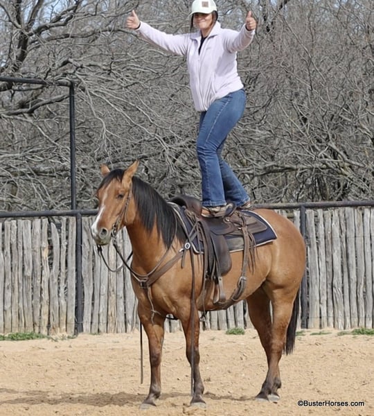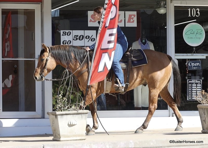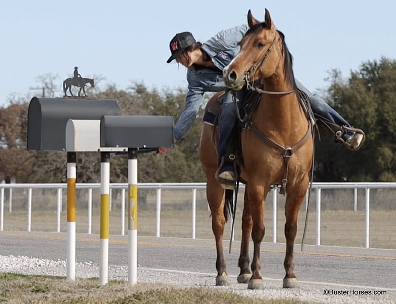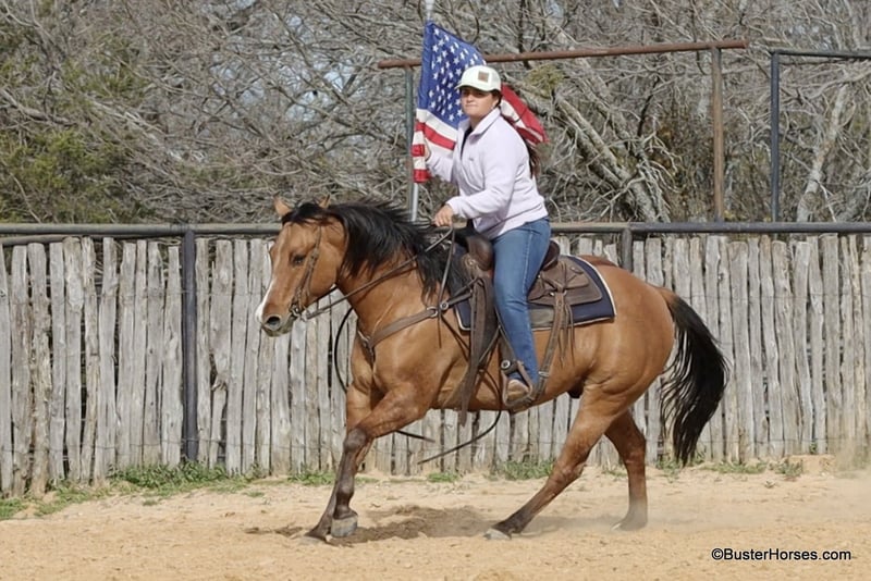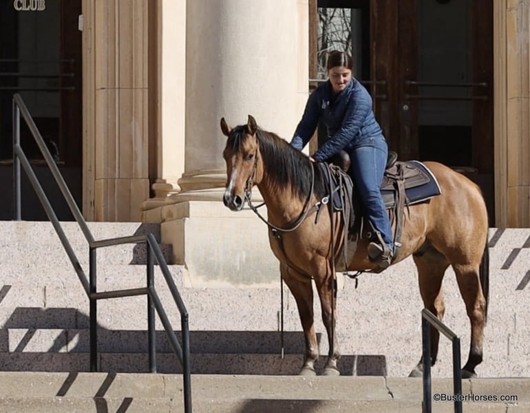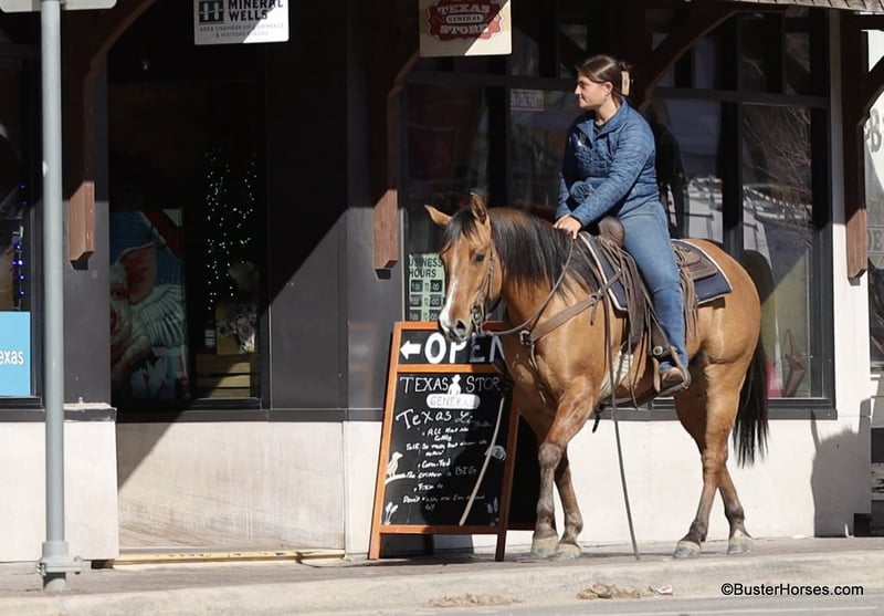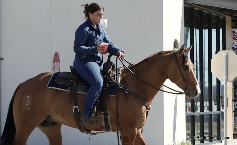ONLINE AUCTION Place your bids at www.PlatinumEquineAuction.com Starting Bid $3500 Auction ends March 23rd, 2025 Need a new saddle? Check out White Rock Saddles on our website or Facebook! Forest is an absolutely GORGEOUS young dun gelding!!! He is as stout as he is tall, he is only 14.2, but has massive bone and body, to be able to carry any size rider very comfortably and fill out the longest of legs. He is a HUGE horse – but he is still super easy to step on and throw your saddle on at only 14.2 Hands. He is classic, old-school cowboy cool, they don’t make many of them like this anymore! He is only 5 years old and he has his entire life in front of him, for his next family or rider to enjoy him for a very long time. He has had a real job out in West Texas working the ranch and in the feed lots, that’s why he’s so broke!!! He has also been lightly started in the roping pen. He is an absolute pet dog and he would love to end up in a family/ pet / companion type of home. He loves attention… he’s the one you can put with a group of awful to catch horses… and he’ll help you catch the other horses! He has an adorable personality and he seeks being with people and having a job. He was started right with an excellent solid foundation, to be ready to go on from here and smoothly add any sort of finish and polish to – he is ready right now to go season for any particular job that you have for him. He is great riding out alone and has been many miles alone. He is very confident and eager leaving the barn, leaving the trailer, or leaving a group of horses – he could care less, he enjoys going somewhere, and has very little horsiness to him. He is absolutely great in town, very friendly and curious – he seems to really enjoy the new sites and scenes. He has a great walk, trot, lope, stop, and turn-around – he works a gate like a pro, and does it all looking fancy and relaxed, with his head level and on a loose rein. We love this guy, and we sure wish we could consistently find 25 geldings like this every single month – our job would sure be super-duper easy! If you have any questions about him, please do not hesitate to call, we will be happy to discuss him in more detail and answer any specific questions you have! Forest is barefoot and has absolutely exceptionally excellent feet, he is one of the very few horses we get in who doesn’t need front shoes even on our hard rocky ground and doing lots of work on the pavement! His teeth were just done by our equine dentist last month, his feet were just trimmed this week, and he also had his sheath cleaned, his ears preemptively treated for ticks, and was dewormed at that time. He is in great shape, just a hair on the fat side, but is plenty fit enough to go right to work. He is an easy keeper and in good health. Watch his video, and to see additional videos, go to our website: BusterHorses.com or our Facebook page. If you have any questions call Buster Horses Ashley 214-605-7174. Forest is located in Weatherford, TX – one hour from Dallas / Fort Worth International Airport. He is an easy day trip, or fun overnight trip to come and try out, from anywhere! We are experienced, knowledgeable sellers, and we can help with quickly arranging affordable shipping to any buyer’s location – we have experience shipping worldwide – including regularly to Hawaii, Canada, Mexico, Europe, and South Africa. Check our website for buyer reviews, more videos of Forest, additional info, etc: BusterHorses.com/Forest-Dun-Gelding ONLINE AUCTION Place your bids at www.PlatinumEquineAuction.com Starting Bid $3500 Auction ends March 23rd, 2025 Need a new saddle? Check out White Rock Saddles on our website or Facebook!