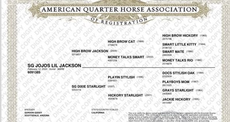 ONLINE-AUKTION Geben Sie Ihre Gebote unter www.PlatinumEquineAuction.com ab. Startgebot $3500 Die Auktion endet am 28. Juli 2024. Brauchen Sie einen neuen Sattel? Schauen Sie sich White Rock Saddles auf unserer Website oder Facebook an! SG JOJOS LIL JACKSON alias Sis erfüllt alle Kriterien, die Sie haben. Sis hat einen geladenen Stammbaum, einen phänomenalen Verstand und eine noch bessere Veranlagung. Sie ist eine Enkelin von High Brow Cat sowie von Playin Stylish. Außerdem geht sie auf Grays Starlight und Smart Mate zurück, alle auf ihren Papieren. Mit nur 4 Jahren hat dieses kleine Stutfohlen schon mehr erlebt als ein durchschnittliches Pferd im Teenageralter. Sie steht knapp unter 14,2HH, ist aber kräftig mit guten Knochen und Fuß. Als 2-jähriges Stutfohlen wurde sie 120 Tage lang professionell von einem Reining-Cow-Horse-Trainer ausgebildet. Mit diesem Training trägt sie sich anmutig, niedrigköpfig und weich. Sie läuft versammelt, perfekt im Kreis, wechselt die Führung, gleitet und dreht sich ohne Zügel- oder Beindruck. Sis ist EXTREM ruhig im Kopf, wird nie nervös oder panisch in irgendeiner Situation. Sis hat schon viele Meilen auf der Weide verbracht, um Rinder zu sammeln, zu verarzten, zu brandmarken und in den Korrals zu sortieren. Wir haben vor kurzem mit ihr begonnen, Rinder zu treiben, und sie hat sich schnell daran gewöhnt und zeigt großes Potenzial als Zugpferd. Wir haben etwa 30-40 Ochsen aus der Box auf sie losgelassen und sie jagt die Kuh ebenso wie den Stop. In der Hand ist sie immer weich und ansprechbar. Sie ist garantiert das ruhigste, leiseste und sicherste junge Pferd, das Sie je finden werden. Sis wurde letztes Jahr auch in einem Sommercamp mit Kindern eingesetzt. Sie hat ihnen das Striegeln, Satteln und Reiten beigebracht, sowohl in der Halle als auch auf den Wegen. Jeder, der ein Bein über ihren Rücken schwingen kann, wird mit ihr zurechtkommen. Sie wurde an der gesamten Zentralküste zu Rodeos, Wettbewerben, Stränden und Nationalparks mitgenommen. Sie hat noch nie mit der Wimper gezuckt und ist immer die Beste in der Herde. Trotz ihres ausgefallenen Handgriffs und ihres hübschen Rahmens ist ihr freundliches und liebes Gemüt das, was dieses Stutfohlen einzigartig macht. Sis ist die erste, die Sie jeden Tag am Tor begrüßt. Sie ist zu 100% geduldig und entspannt und lässt sich überall ruhig anbinden. Sie hat noch nie gebockt, auch nicht, als sie zum ersten Mal angeritten wurde. Wenn man sie monatelang nicht reitet, wird sie genau das gleiche Pferd sein, das man weggestellt hat. Sie liebt Wasser und Leckerlis und will dein Freund sein. Sie lässt sich striegeln, steht für den Hufschmied bereit und lässt sich wunderbar trailern. Ich kann nicht genug tolle Dinge über dieses junge Pferd sagen. Wir werden traurig sein, sie gehen zu sehen, denn wir besitzen sie, seit sie ein Jährling war, und haben beobachtet, wie sie sich im Laufe der Jahre zu einem tollen Pferd entwickelt hat. Sie befindet sich in Bitterwater, CA. Für weitere Informationen oder einen Termin, um sein süßes Mädchen zu sehen, kontaktieren Sie Cheyenne Rey 831-537-8746. ONLINE-AUKTION Geben Sie Ihre Gebote unter www.PlatinumEquineAuction.com ab. Anfangsgebot $3500 Die Auktion endet am 28. Juli 2024. Brauchen Sie einen neuen Sattel? Schauen Sie sich White Rock Saddles auf unserer Website oder Facebook an!