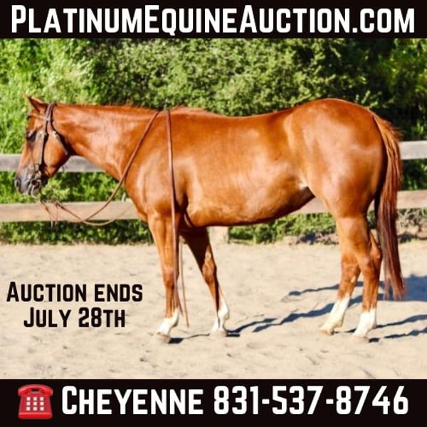 ONLINE AUCTION Place your bids at www.PlatinumEquineAuction.com Starting Bid $3500 Auction ends July 28th, 2024 Need a new saddle? Check out White Rock Saddles on our website or Facebook! SG JOJOS LIL JACKSON aka Sis will check every single box you have. Sis has a LOADED pedigree, a phenomenal mind, and an even better disposition. She is a granddaughter of High Brow Cat, as well as, Playin Stylish. Also goes back to Grays Starlight and Smart Mate ALL ON HER PAPERS. At just 4 years old, this little filly has been exposed to more than your average teen aged horse. She stands just under 14.2HH but is stout with good bone and foot. As a 2 year old, she was professionally started with a reining cow horse trainer for 120 days. With that training she carries herself gracefully, low headed and soft. Lopes collected, perfect circles, changes leads, slides, and spins all off leg or rein pressure. Sis is EXTREMELY quiet minded, never gets nervous or panicky in any type of situation. Sis has been lots of miles out gathering cattle, doctoring, branding and sorting in the corrals. We have recently started her on cattle and she has taken to it quickly and shows great promise as a heel horse. We have ran about 30-40 steers out of the box on her and she hunts the cow as well as the stop. Always soft and responsive in your hand. This is guaranteed to be the calmest, quietest, SAFEST young horse you will ever find. Sis was also used last year in a summer camp with kids. She taught them how to groom, saddle and ride, in the arena as well as out on trails. Anyone that can swing a leg over her back will be able to get along with her. She’s been hauled all over the central coast to rodeos, competitions, beaches and national parks. She has never blinked an eye at anything new and is always the best one in the herd. Even with her fancy handle, and pretty frame the thing that makes this filly one-in-a-million is her kind and sweet mind. Sis will be the first one to meet you at the gate everyday. She is patient and relaxed 100% of the time and will stand quietly tied anywhere. She has never bucked even when she was being started for the first time. Leave her off months and she will be the same exact horse you put away. She loves water and treats and wants to be your friend. She clips, stands for farrier and trailers amazing. I cannot say enough great things about this young horse. We will be sad to see her go as we have owned her since she was a yearling and have watched her become an amazing horse over the years. She is located in Bitterwater, CA. For more info or schedule a time to see his sweet girl, contact Cheyenne Rey 831-537-8746. ONLINE AUCTION Place your bids at www.PlatinumEquineAuction.com Starting Bid $3500 Auction ends July 28th, 2024 Need a new saddle? Check out White Rock Saddles on our website or Facebook!