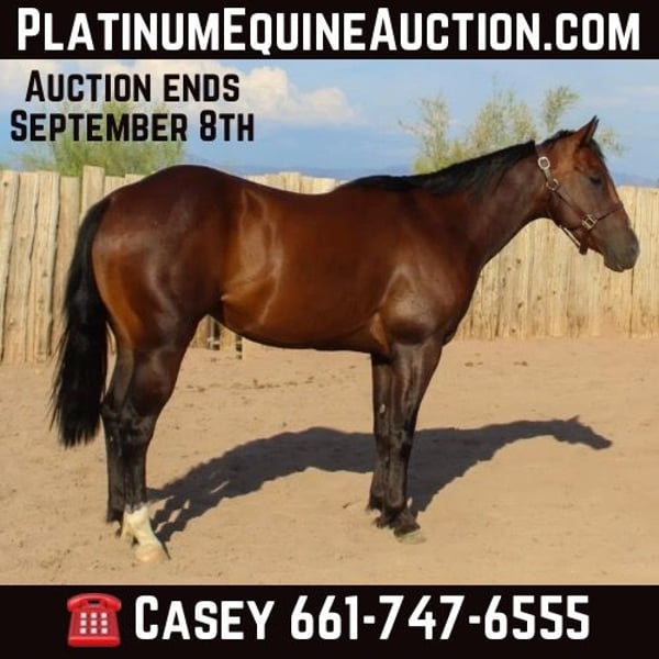 ONLINE AUCTION Place your bids at www.PlatinumEquineAuction.com Starting Bid $3500 Auction ends September 8th, 2024 Need a new saddle? Check out White Rock Saddles on our website or Facebook! Blue Cat King aka “Pepe” is 4 yr old AQHA gelding. He stands 14.1 hands tall. He has an excellent pedigree that goes back to Dual Rey and HIGH BROW CAT!!! Pepe has been hauled across Arizona, California, and Nevada. He has spent extensive time on ranches and even in the bright lights of Las Vegas. There is not much that phases him, with his eagerness to please and confidence to keep going. He is a gentleman around other horses and easy to get along with. Pepe has a bright future with any direction someone chooses to go with him, whether it’s a performance horse or a trail horse. He has been lightly started in roping and has exposure to many cattle, with lots of time out on the trail. He handles any obstacle that is in his path with ease! He can stop hard and turn around in an arena or easy around any trail you put him on. He’s sure footed and happy to go anywhere. Located in Scottsdale, AZ. If you have any questions feel free to call Cardon Livestock Casey 661-747-6555. ONLINE AUCTION Place your bids at www.PlatinumEquineAuction.com Starting Bid $3500 Auction ends September 8th, 2024 Need a new saddle? Check out White Rock Saddles on our website or Facebook!