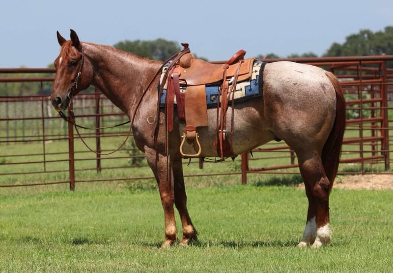 ONLINE AUCTION Place your bids at www.PlatinumEquineAuction.com Starting Bid $3500 Auction ends June 22nd, 2025 Need a new saddle? Check out White Rock Saddles on our website or Facebook! Axel has a heart of gold and is as quiet as any one you could hope to find. Ax always wants to be your best friend, and is sucker for love and attention. He is a grade, red roan, 5 year old gelding standing at 14.3hh tall. Axel is quiet to be around, good with his feet, and a gentleman on the ground. He’s been exposed to almost anything you can imagine including guns, whips, tarps, flags, ropes, or whatever else might look strange to a horse. He wants to ride slow, and relaxed. He picks up both leads nicely and lopes off with ease. Above all Axel really shines, and excels being out on the trails and in the arena. He’s calm, steady, and quiet handling himself in rough country, maneuvering with ease over bridges, bogs, crossing water, etc… Axel has been ridden by all levels of riders, and is forgiving of mistakes made by those who are new, helping to build their confidence. He would really go far in trail versatility classes or would help you to capture the eyes emotions carrying a flag. Whether you’re on the ranch, and in the arena, everyone notices him by his looks, and quiet demeanor. Axel is a seasoned rope horse and would be great for someone to learn on! Axel is located in Lipan Texas. We are more than willing to help with all shipping needs, we ship all over the country as well as Hawaii and Canada. For more information please call Makenna Hartzell 817-659-3778. ONLINE AUCTION Place your bids at www.PlatinumEquineAuction.com Starting Bid $3500 Auction ends June 22nd, 2025 Need a new saddle? Check out White Rock Saddles on our website or Facebook!