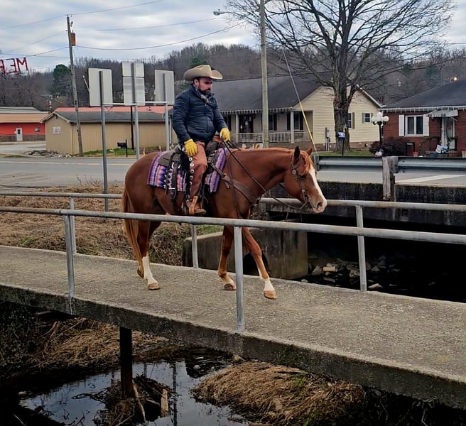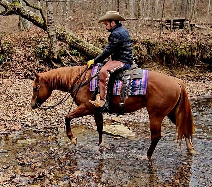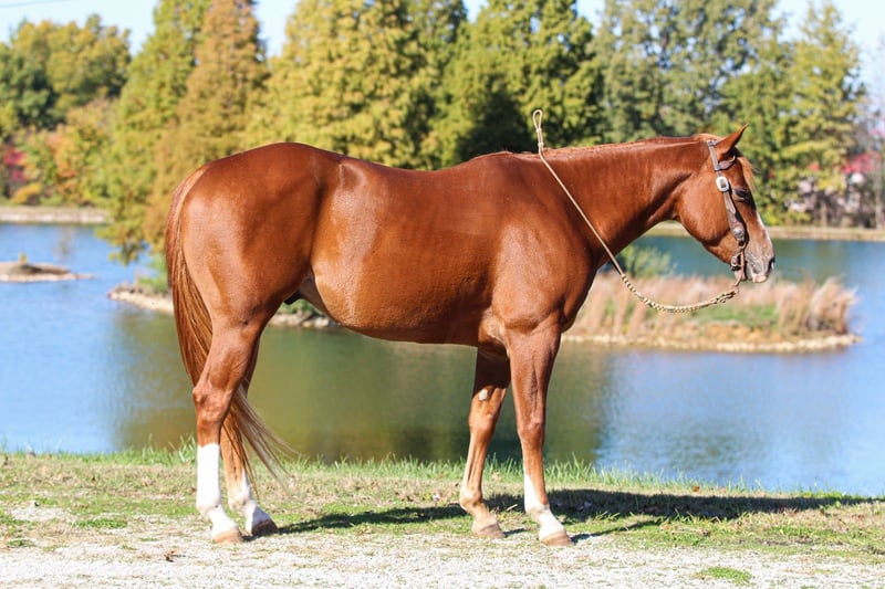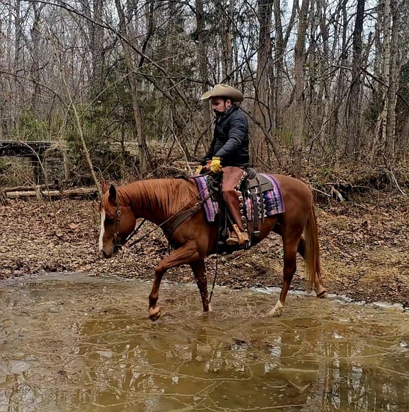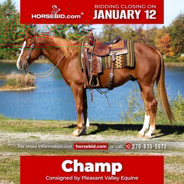 ♦️𝐍𝐄𝐖 𝐘𝐄𝐀𝐑'𝐒 𝑬𝒙𝒕𝒓𝒂𝒗𝒂𝒈𝒂𝒏𝒛𝒂♦️ Happening now thru MONDAY | JANUARY 12th - Available EXCLUSIVELY on HorseBid's website! For more details and to register visit: www.Horsebid.com CONSIGNOR CONTACT: Pleasant Valley Equine 270-635-5572 LOCATION: Robards, KY BREED: Quarter Horse REGISTERED: Yes REGISTERED NAME: Go Doc Olena Go COLOR: Sorrel HEIGHT: 15.1 AGE: 6 GENDER: Gelding Handsome and handy. Champ has been in our training program for six months and has passed all his tests and graduated. He’s now ready to find his career and life partner. Champ has been over all the trail obstacles. He will side pass and work the gate and will lope off from a standstill. Champ has fluent, correct rollbacks and has a rocking chair canter. He has been ridden through town and on the trail. He will go through deep water and up and down steep creek banks with ease. Champ has been through a rigorous desensitizing course: tarps, noodles, inflatables, whips, and has no cares in the world. He is definitely a more WHOA then go type of horse which makes him great all level riders. He will make a great partner to hit the trails with or go to the ranch shows with. Champ has the best personality. He is in your pocket friendly, but very respectful. He will make you a great riding partner. Champ stands flawlessly for saddling, bathing, clipping, farrier, and mounting and dismounting. Champ will stand tied for hours, quiet as a church mouse. He loads and hauls like a true gentleman. Champ sells 100% sound. Call today to make an appointment to meet Champ 270-635-5572