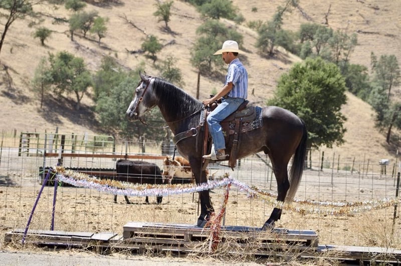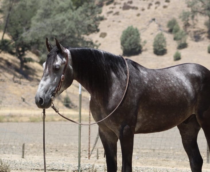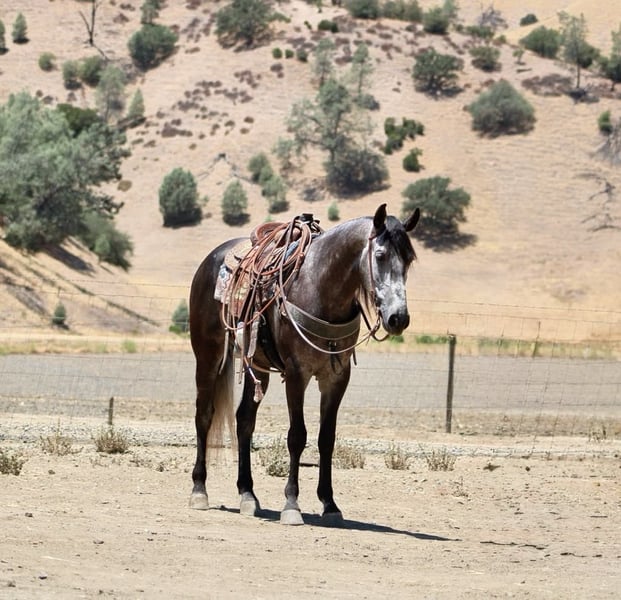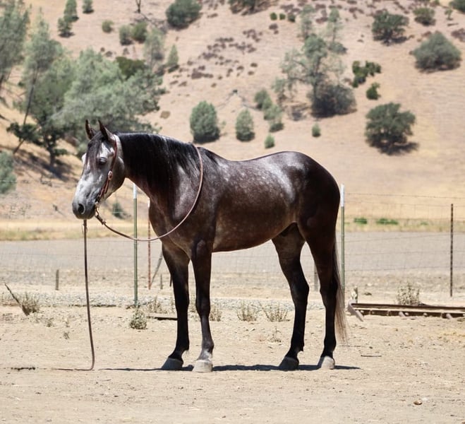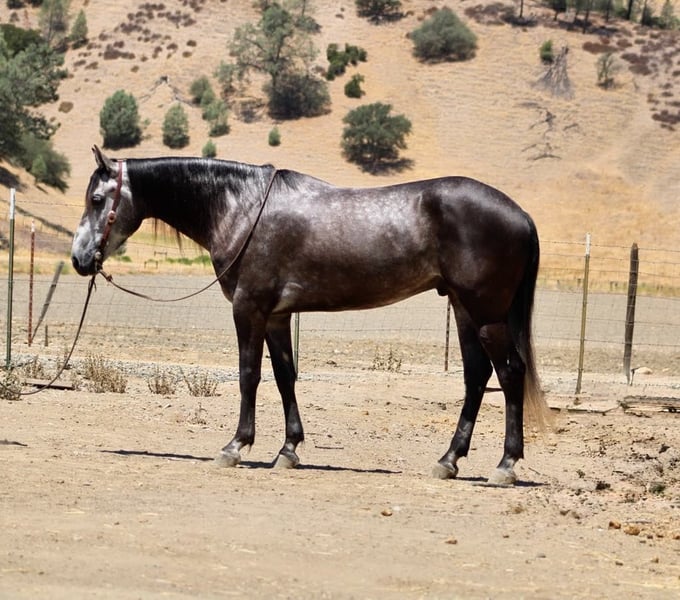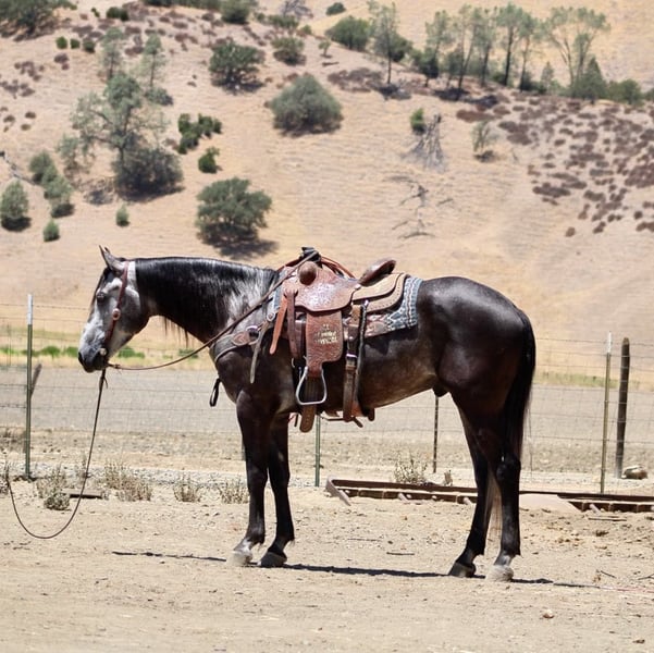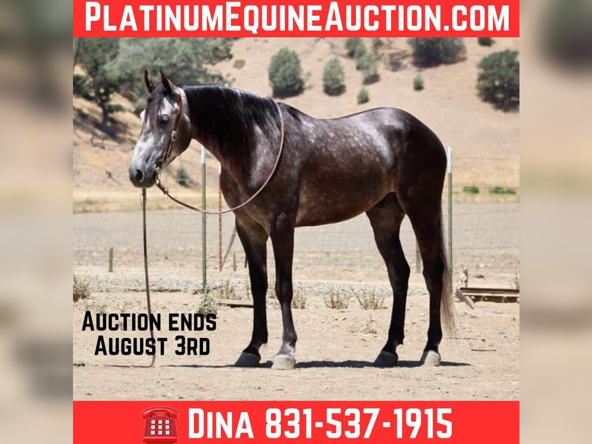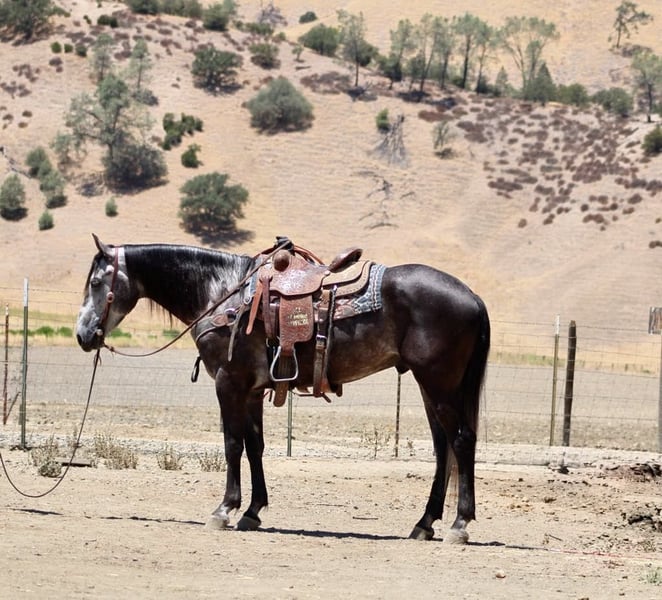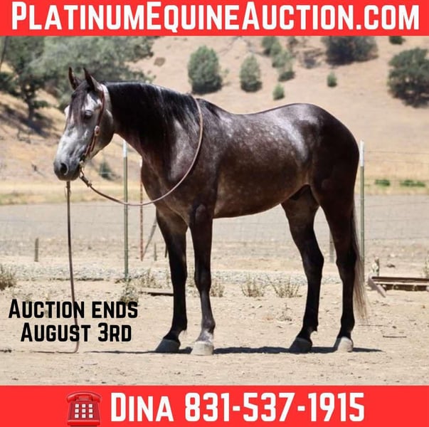 ONLINE AUCTION Place your bids at www.PlatinumEquineAuction.com Starting Bid $3500 Auction ends August 3rd, 2025 Need a new saddle? Check out White Rock Saddles on our website or Facebook Meet Ammo… 5- year -old | 15.2 hinds | Steel Grey Gelding—a striking steel grey gelding with a gentle soul and the steady confidence of a much older horse. At 5 years old, he’s still young and eager to learn, but he already has a well-rounded foundation that makes him an ideal partner for riders looking for both fun and reliability. Ammo has been used for gathering cattle, checking fences, and cruising down trails with ease. He’s unphased by wildlife, creeks, rocky terrain, and steep hills—always surefooted and steady no matter the challenge. In the arena, Ammo shows smooth, balanced movement. He picks up both leads, stops nicely, and backs up effortlessly. His size and athleticism would also make him a great candidate for English disciplines or drill teams. He’s been exposed to tarps, flags, balls, and trail obstacles, confidently crossing bridges, tires, and even lakes without hesitation. A calm and easygoing ride, Ammo is happy out alone or with a group. He hauls well, ties, bathes, and tacks up with excellent ground manners. While he’s mature in temperament, he’s still young and ready to grow into the perfect partner for someone looking to enjoy many years of riding, trail adventures, and ranch work. If you want a handsome, versatile, and safe gelding with a kind heart and a solid foundation, Ammo is ready to become your next best friend. Located in Paicines, CA Call Contact Dina at Longhorn Ranch 831-537-1915. ONLINE AUCTION Place your bids at www.PlatinumEquineAuction.com Starting Bid $3500 Auction ends August 3rd, 2025 Need a new saddle? Check out White Rock Saddles on our website or Facebook