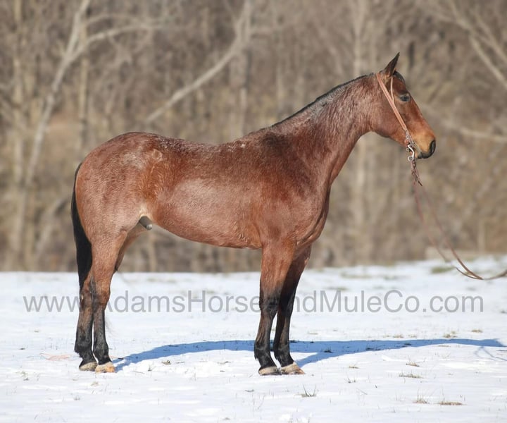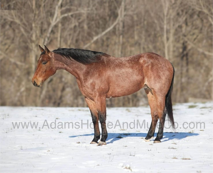 Go to visit our website for more pics and a video. AHAMC has been in the horse business and sold horses over the internet since 2005. We have a long track record of success with hundreds of happy customers. We work hard to match riders with the correct horses and specialize in beginner safe, family friendly horses that have been used and checked out by our family! Diagonal Hancock is a beautiful Bay Roan that is very stout built, standing 15.3hh and he is a 2020 Model Registered AQHA Gelding! Since back in the Summer DH has been with a family who has a small cow/calf operation. He has done some of it all from sorting to roping and doctoring. But DH’s main job has been toting the kids around the place and down the trails. DH is a gentle type of horse that is never in a hurry! He lopes nice slow circles, catches the correct leads, has a good stop and reins around. DH is content to mosey along down the trail and loves going on trail rides. He will cross creeks, ditches, logs and navigate rough rocky areas. DH has been exposed to all kinds of wildlife and will go anywhere that he is asked too. He has been rode many miles in the mountains and encountered every obstacle possible on the trail. He will go up or down even the steepest slopes, across deep creeks, over downed trees, and over all types of rough terrain while still being sure footed. DH has been ridden down the highways and is traffic safe as well. If you need a broke, quiet, gentle, safe horse for ranch or trails… DH is your guy! Call 606-308-2461 with any questions.