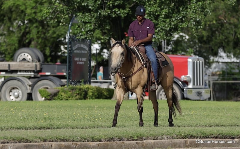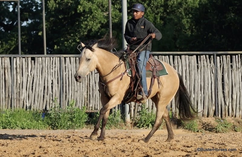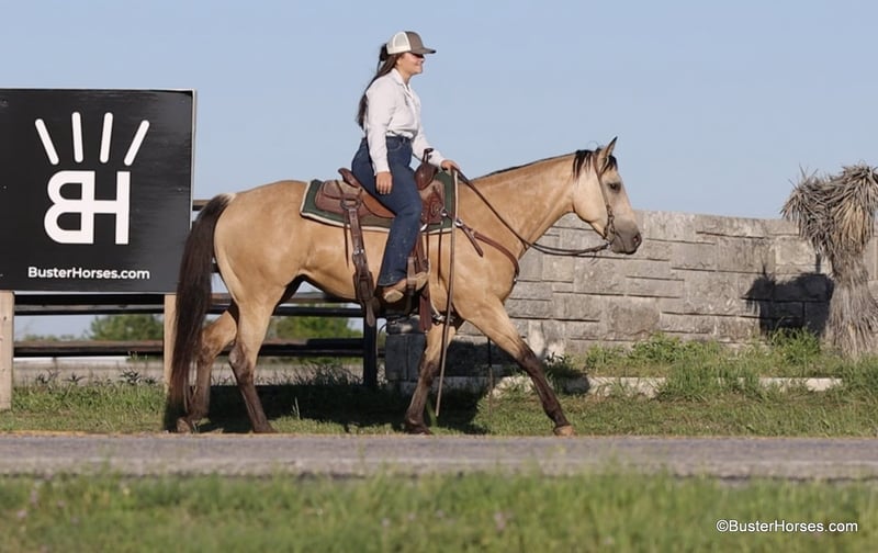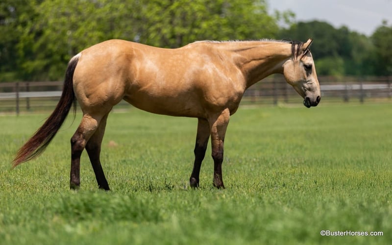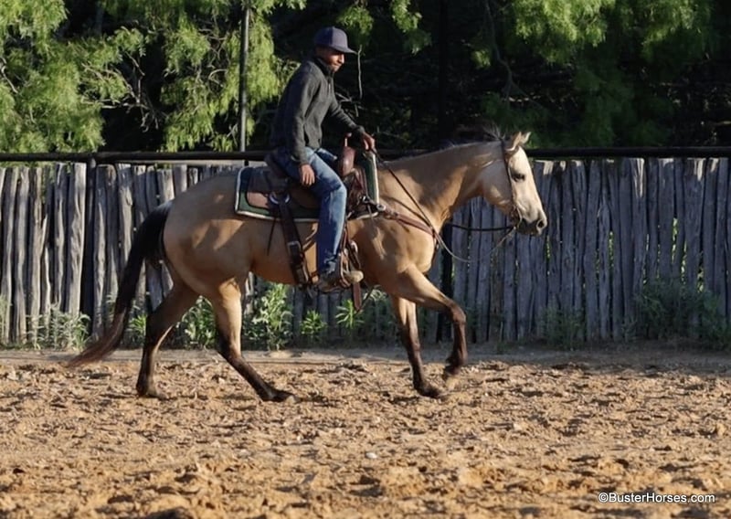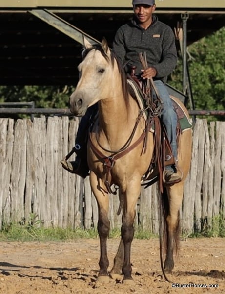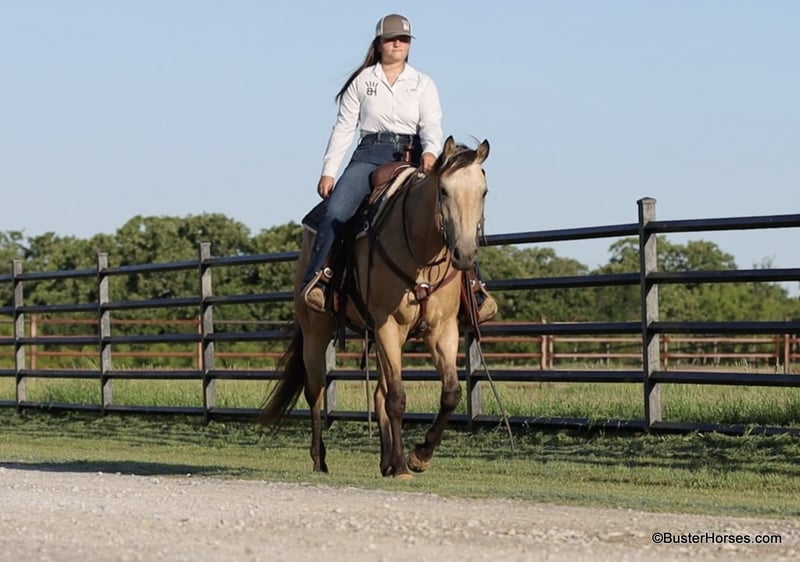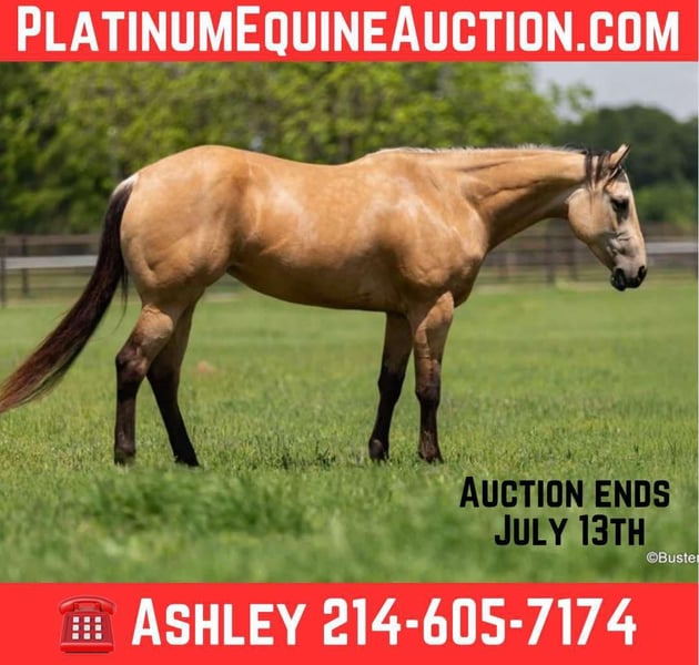 ONLINE AUCTION Place your bids at www.PlatinumEquineAuction.com Starting Bid $3500 Auction ends July 13th 2025 Need a new saddle? Check out White Rock Saddles on our website or Facebook! CR Toadally Sugar aka Verity is a stunning, 15h, well-built 5-year-old AQHA registered buckskin mare with all the right looks and a heart to match. She’s got a beautiful frosted black tail, balanced hip, clean legs, and a pretty, feminine head — and somehow, she’s even prettier in person than in her photos. She has been up in our fitting barn for 60 days and she looks like a million bucks!!! She’s had a solid start at a reined cowhorse trainer as a young horse, and then she has been used for checking the ranch, fences, riding in town, and working cattle. Verity is quiet in traffic, handles new environments with ease, and is just as content riding out solo as she is with a group. She’s quiet, confident, and consistent even with time off. She travels in all three gaits easily and in a natural balanced frame on a loose rein – she catches both her leads, backs up softly, has a nice turnaround, and has a great stop from any gait. She has a soft, correct foundation to go any direction: ✅ Ranch Riding ✅ Breakaway or Head/Heel ✅ All-Around Versatility Mare Verity is by an own son of Son of Hickory, with classic cow horse and running lines on her dam’s side — bred to be athletic, versatile, and durable. Verity was just recently maintained by the equine dentist, and was just shod by the farrier, wormed, and she has a recent Coggins. We can quickly and easily get travel health papers drawn up anywhere you need her to go. She will arrive to her new owner with all cares in order and ready to do whatever job you have for her! Please feel free to reach out to us to come ride and try Verity, we would love to meet you in person and show her to you. We are conveniently located only an hour from a large centrally located international airport, making coming to see her possible no matter where you live! Please check out Buster Horses / Buster Ranch our past customer reviews on Google, Facebook, and our own website. And please go to Verity’s web page for more information, pictures, and for additional videos: BusterHorses.com/Verity Don’t miss your chance to own a mare that offers pedigree, performance, and world class looks! Call/text Ashley with Buster Horses 214-605-7174. ONLINE AUCTION Place your bids at www.PlatinumEquineAuction.com Starting Bid $3500 Auction ends July 13th 2025 Need a new saddle? Check out White Rock Saddles on our website or Facebook!