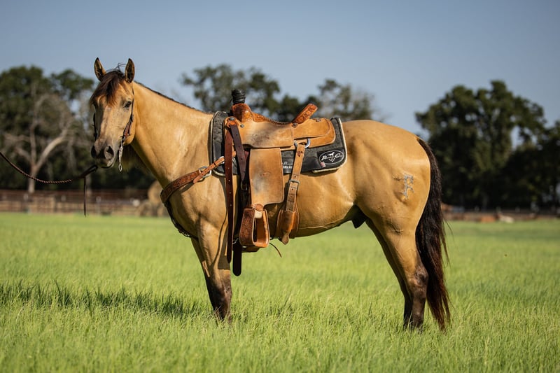 ⭐️ 𝐀𝐔𝐆𝐔𝐒𝐓 𝓐𝓵𝓵 𝓢𝓽𝓪𝓻 𝓛𝓲𝓷𝓮𝓾𝓹 ⭐️ Happening now thru MONDAY | AUGUST 25th - Available EXCLUSIVELY on HorseBid's website! For more details and to register visit: www.Horsebid.com CONSIGNOR CONTACT: Happy Hass Ranch 972-310-8910 LOCATION: Weatherford TX BREED: Qh REGISTERED: No COLOR: Buckskin HEIGHT: 15 AGE: 6 GENDER: Gelding Ez is a 6 yr old rope horse prospect with a long black mane and golden buckskin coat. He’s got the color and the temperament to turn heads. He has had 30 days of professional heeling training and is ready for his next owner to finish him their way! He is great in the box and is not phased or frazzled no matter how many runs you make. Ez is EASY and would be suited for a junior to finish. He has a scar on his back left hoof from an injury 2 years ago. The owners are releasing all vet records on EZ. He has never taken a step wrong and is ready for a job. Here’s your chance at a well minded, “EZ” guy whose flash will get you noticed.