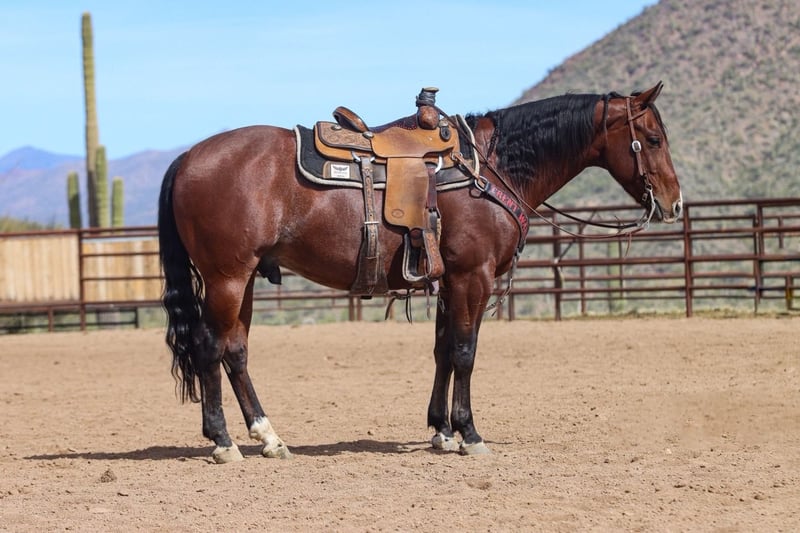 ⚜️𝓽𝓱𝓮 𝐆𝐎𝐋𝐃 𝓢𝓮𝓵𝓮𝓬𝓽⚜️ Happening now thru MONDAY | MARCH 23rd - Available EXCLUSIVELY on HorseBid's website! For more details and to register visit: www.Horsebid.com CONSIGNOR CONTACT: T luttrell 318-294-4086 LOCATION: Oklahoma BREED: Quarter horse REGISTERED: Yes REGISTERED NAME: This Cat Got Spark COLOR: Bay roan HEIGHT: 15 AGE: 6 GENDER: Gelding This Cat Got Spark is by Detroit cat a good son of metallic cat and goes back to shinning spark on the bottom side. This horse is loaded with blood to be a good one. We have hauled him around in az all winter to the jackpots. He has lots of feel between your legs and in your hands. Very light on his feet and real fast footed. Cherry pie stays free through the corner and lets you see the feet the hole time. He has plenty of run for any level but will also slow down when asked to. This horse is the kind you can ride all day everyday and he won’t quit on you. With his beautiful bay color and streaked face he is a head turner when you enter the arena on him. A real classy looking dude. If your looking for a pretty one to go win on check him out.