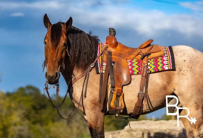 ONLINE AUCTION Place your bids at www.PlatinumEquineAuction.com Starting Bid $3500 Auction ends October 27th, 2024 Need a new saddle? Check out White Rock Saddles on our website or Facebook! Everyone meet Ernie….This absolutely stunning unicorn is what dreams are made of! He is a bay roan Percheron/QH cross standing 15 hands tall and 4 years of age. This is one of the kindest and safest horses to ever come through our program. I truly believe anyone who wants to ride, can ride this horse. He has three soft and easy gaits that are very smooth to ride. Does all of the obstacles out on the trail. Does it all in stride and with ease . Nothing bothers this horse he will go and do anything with no fuss. Has been used at local rodeos to carry the flag at opening ceremony. Also as a pickup horse for youth rodeo. Ernie has been to the little town of Mt. Grove Missouri on his days off. Where he is seeing all the sites around town and entertaining families for pics and rides. He is truly a kind hearted unicorn. We have started him over fences which he enjoys. Please watch our must see video. .You will be entertained for sure.Ernie is totally UTD on farrier,dental,vetting and has all vaccines and necessary paperwork ready to go. Has a clean vet inspection from our licensed veterinarian. We have professional shipper’s that we use. That can haul horses nationwide. Ernie is located in Mountain Grove, MO. We encourage customers to come out and try our horses. Call for more information Beaver Ranch Mike 410-490-7384. ONLINE AUCTION Place your bids at www.PlatinumEquineAuction.com Starting Bid $3500 Auction ends October 27th, 2024 Need a new saddle? Check out White Rock Saddles on our website or Facebook!