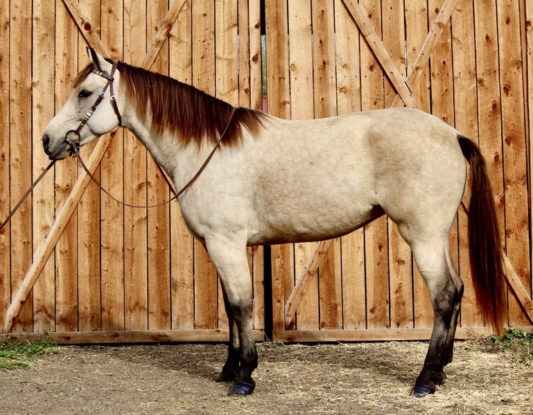 "AVAILABLE ON ONLINE HORSE AUCTION AT www DOT MagicHorseAuction DOT com BIDDING OPEN NOW thru TUESDAY | November 11TH! - BUY IT NOW AVAILABLE! *Final price will be determined on auction site* CONSIGNOR CONTACT INFO: Thea Park 970-632-3644 LOCATION: Fort Collins, CO "★★ CHARLEMAGNE ★★ Buckskin Mare | Bombproof • Dependable • Drop-Your-Reins-and-Go Charlemagne is the real deal. If you’re looking for a reliable, drama-free, all-around exceptional mare — this is her. She’s one of the most honest, forgiving, and kind-hearted horses we’ve ever had the privilege of working with. She’s the kind you can let sit for months, hop on bareback in a halter, and ride down the road without a second thought. She’s been ridden extensively in all types of environments: busy downtown streets, quiet neighborhoods, parks, local natural areas, and wide open trails. Whether it’s traffic, strollers, bikes, barking dogs, runners, or total chaos — she takes it all in stride. She’s crossed rivers, lakes, bridges, and gone under tunnels without ever missing a beat. Charlemagne has a smooth walk, jog, and lope, neck reins with ease, and stops off your seat and voice. She carries a low, natural headset and moves off your leg quietly and willingly. She’s bridle-less broke, flag-broke, tarp-tested, and obstacle-savvy — a total confidence builder with all the buttons to keep her fun for experienced riders, too. She’s also a sweetheart on the ground — first to greet you in the pasture, easy to catch, and loves attention. She’s great for the farrier and vet, gets along with all horses and livestock, and is low in the herd hierarchy. Charlemagne isn’t just another pretty face — she’s the kind of mare people spend years looking for. The kind who makes you feel safe, seen, and like every ride is the best part of your day. 📽️ Check out her video and come see why we’re so proud to offer her.