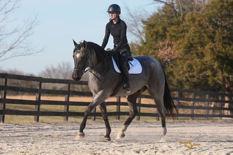 ONLINE AUCTION Place your bids at www.PlatinumEquineAuction.com Starting Bid $3500 Auction ends January 11th, 2025 Need a new saddle? Check out White Rock Saddles on our website or Facebook Atticus is a 5 year old Percheron/Friesian x Quarter Horse gelding standing 16.1 hands high. Not only is he show stopping beautiful, he is one of the most well rounded and educated draft crosses you’ll ever meet. His training has been thoughtful, and his experience is real world on the ranch. Under English tack, you can put together a dressage test beautifully, jump around the cross country field, or enjoy a hunter pace. Under western tack, Atticus has worked in the feed lot, and is used in all aspects of ranch work; from early morning shippings to gathering and doctoring cattle on pasture. He is the perfect horse for the rider who values a relationship with their partner. Together you can truly do a bit of everything and do it well. In the arena, Atticus will do any job that’s asked of him. He has three extremely smooth gaits that are adjustable and comfortable. He has great transitions, stops, and an easy turnaround. Atticus is just an all around easy horse to ride and enjoy. He moves well off leg pressure, has an easy neck rein, and is seamless between disciplines. In English tack; he will ride on a loose rein or in the bridle, schools first level tests, and has nice leg yields, side passes, and pivots. Under western tack, Atticus is one handed, rides correctly, and lopes balanced circles. Outside of the arena, Atticus has tons of miles on the ranch. He has done all the jobs, knows his way around a rope, and is an expert in the feed lot. He’s been hauled all over to go to various clinics, cross country schooling, and lessons. In new places he takes everything in and has never put a foot wrong. He is safe in traffic, along busy roads, and in town. He is great to travel with, easy to load, and a gentleman on the trailer. In the barn, Atticus’s ideal partner is someone who enjoys not just riding – but having a relationship with their horse on the ground too. He appreciates a gentle and kind person who values a bond with their horse. Atticus is always the first to greet us and loves reaching his nose out of the stall to nuzzle the kids. He’s a good boy for all of the usual barn tasks; grooming, bathing, clipping, and more. ⚫️Atticus is an easy keeper with no quirks or maintenance. We have a recent, clean vet check on file. ⚫️Our program aims to train and produce top quality horses and ponies for all disciplines and experience levels. Check out our website for testimonials! ⚫️We are located in Bogard, MO. We can help you arrange shipping anywhere! ⚫️For more information about Atticus, or any of our other horses call or text us. Kieran 660-886-0452 Beau 573-303-4087 ONLINE AUCTION Place your bids at www.PlatinumEquineAuction.com Starting Bid $3500 Auction ends January 11th, 2025 Need a new saddle? Check out White Rock Saddles on our website or Facebook
