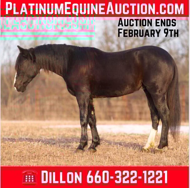 ONLINE AUCTION Place your bids at www.PlatinumEquineAuction.com Starting Bid $3500 Auction ends February 9th, 2025 Need a new saddle? Check out White Rock Saddles on our website or Facebook! Jesse is a beautiful 5 year old 15.2 hand. Black gelding. Who has a very gentle eye and kind soul. We have used Jesse to move cattle out to and from corn stock pastures. We have trail rode him everywhere. crossed creeks jump logs and lots of timber riding. He has a good Handle and a soft mouth. He is wonderful to be around and great personality puts him to be the first one at the gate to meet you. Jesse is 100% sound for more information please call Dillon Staton 660-322-1221 Located in Carrolton, MO.
